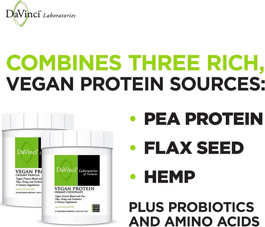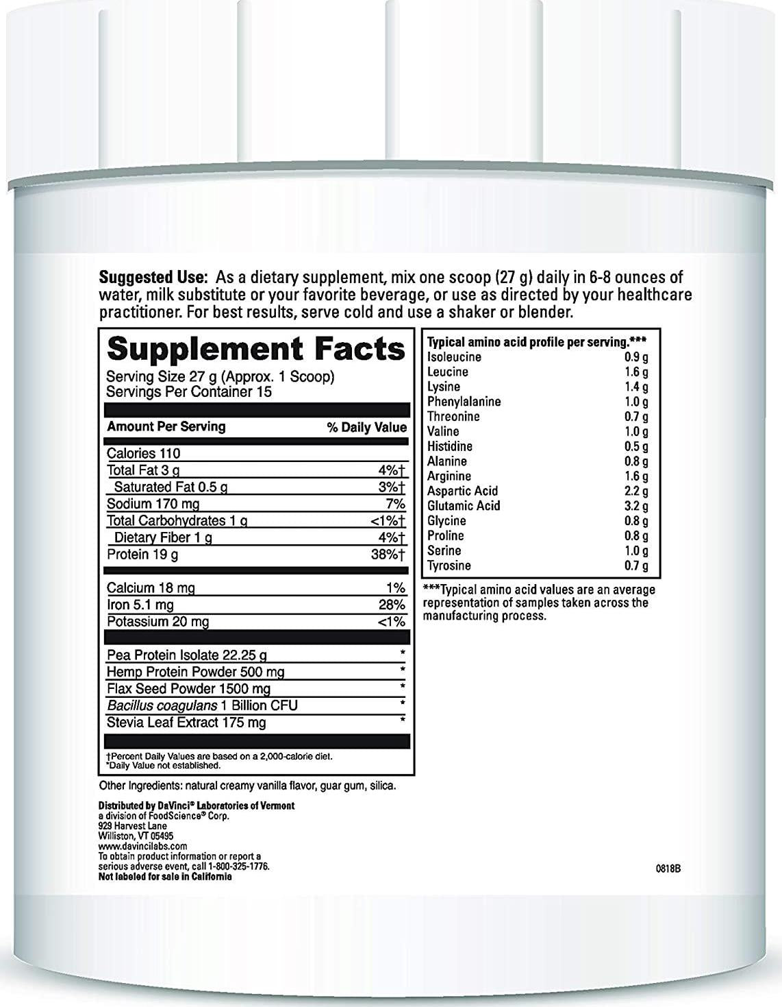 DaVinci Laboratories, Vegan Protein Powder-Creamy Vanilla, Plant-Based, Gluten-Free, 15 Servings