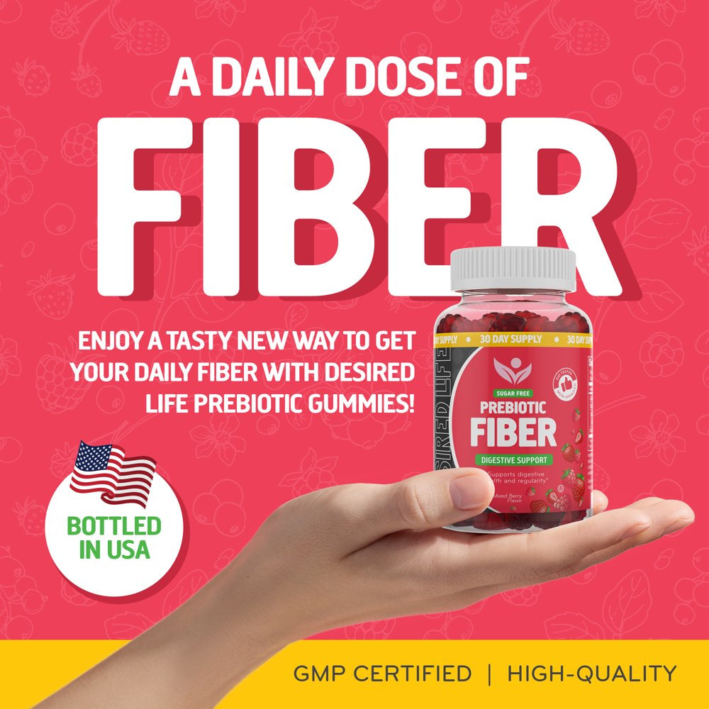 - GET FIBER WITH FLAVOR - Tired of choking down big fiber pills or psyllium husk capsules? Enjoy a tasty new way to get your daily fiber with Desired Life prebiotic gummies. Infused with mixed berry flavor, each serving provides 4g of chicory root fiber.