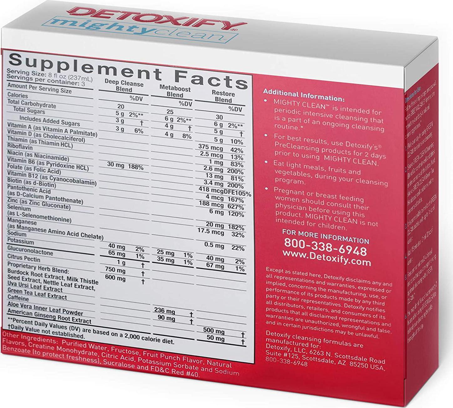 Detoxify Mighty Clean Herbal Cleanse Tropical Fruit Flavor (3) x 8 oz Bottles Professionally Formulated, Great Tasting Herbal Cleanse 4 Factor Full Cleansing System