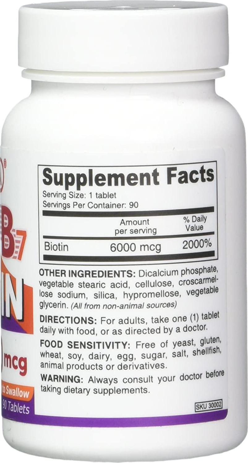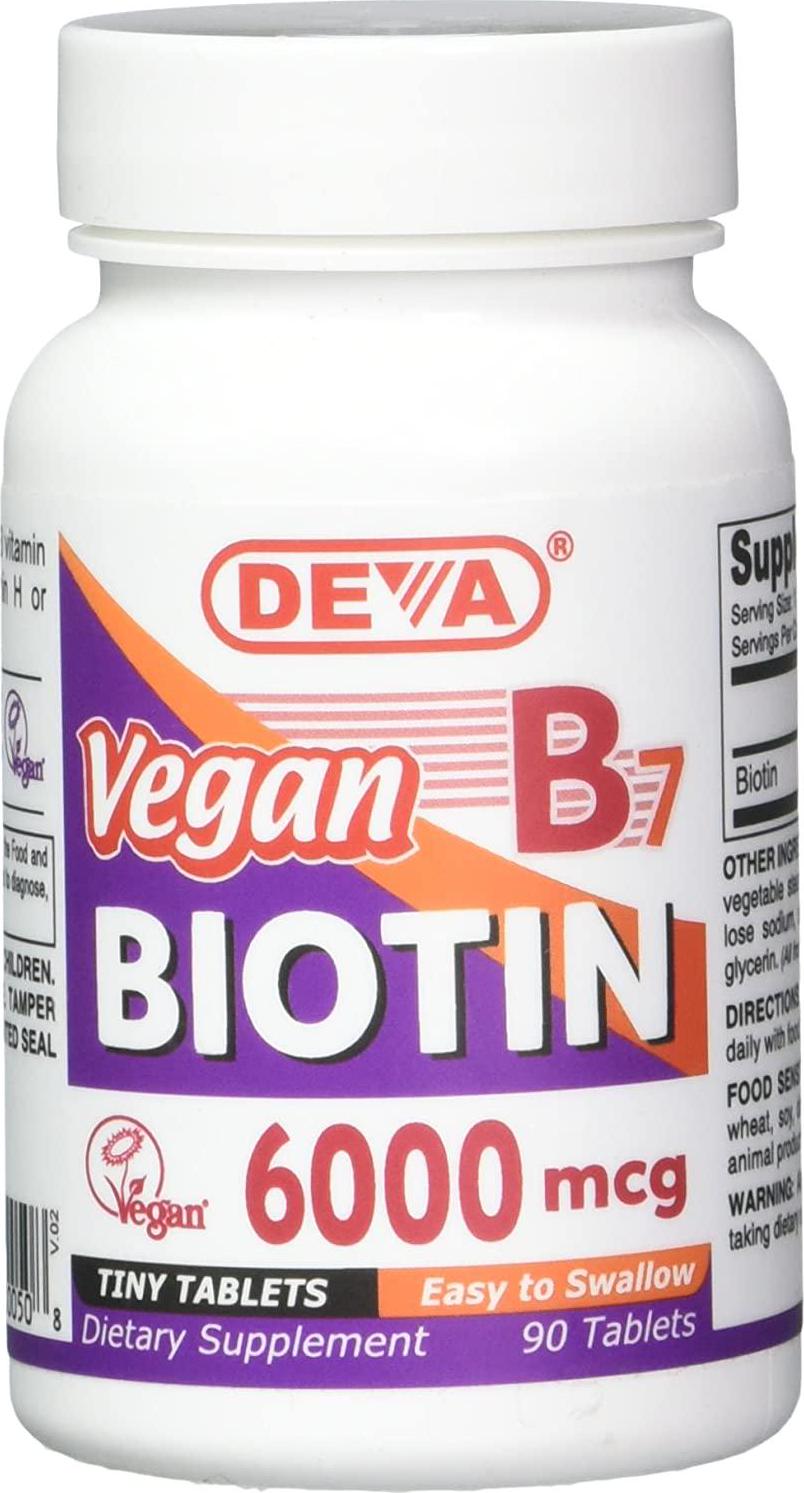 6000 mcg, 90 tablets, biotin, deva nutrition, vegan, vitamin b7