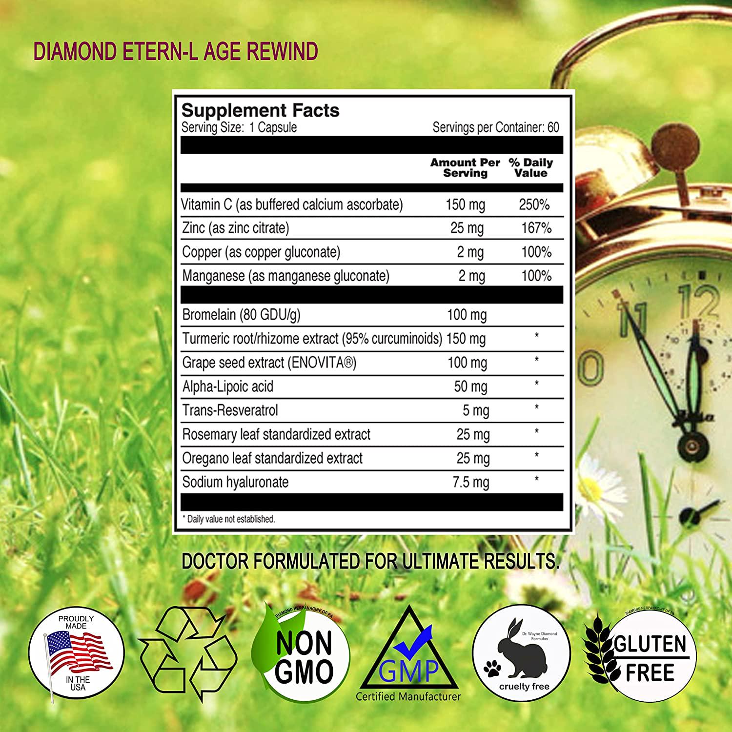 - SCIENTIFICALLY FORMULATED - Researched and developed by Dr. Wayne Diamond, a Philadelphia Naturopath, Psychotherapist and pioneer in Natural Medicine, Diamond Etern-L is scientifically formulated to address the aging process