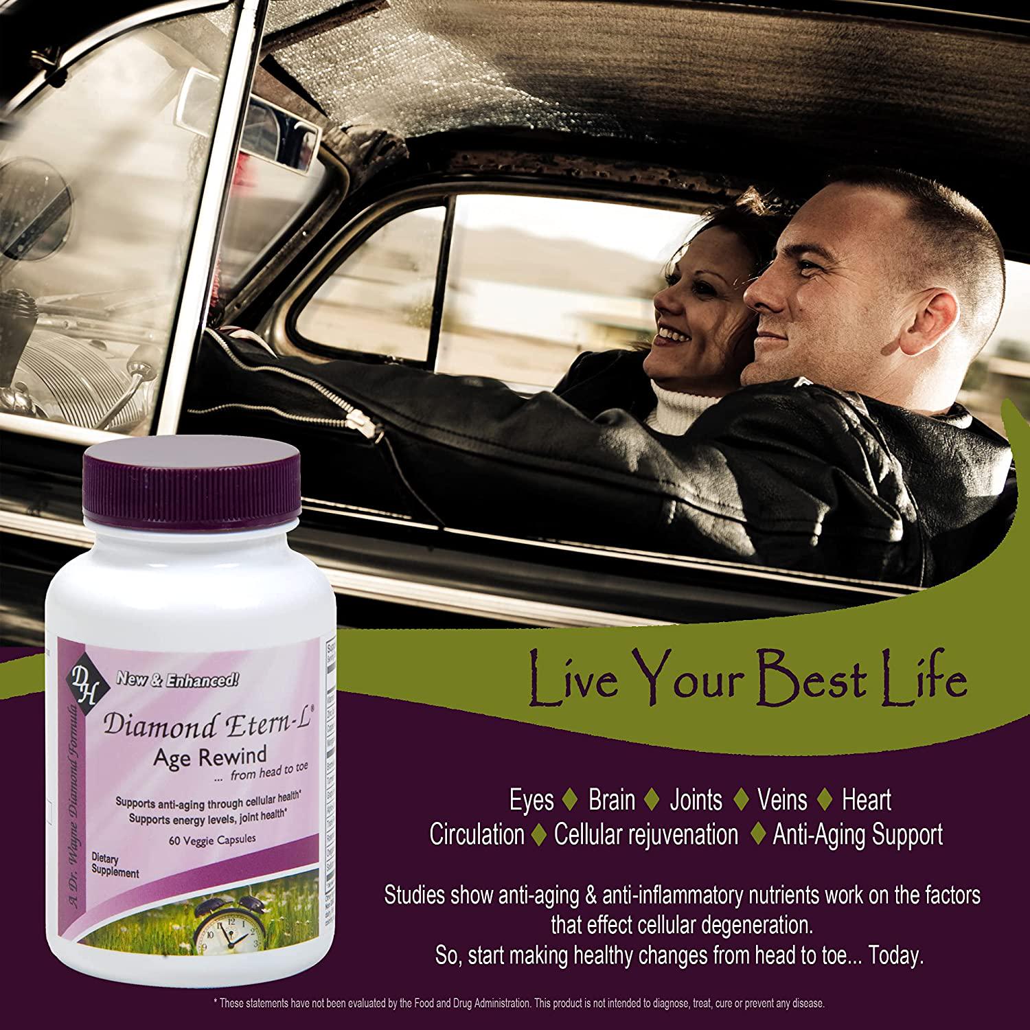 Diamond Etern-L Age Rewind – Anti-Aging Dietary Supplement – Supports Energy Levels and Joint Health – Non-GMO, Gluten Free, Vegan – 60 Capsules