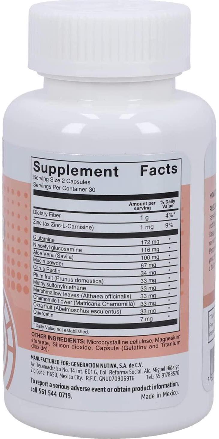 - Ingredients: L-glutamine, Glucosamine, Aloe vera, Marshmallow, Chamomile, Zinc ,Plum, Carnosine & Magnesium.