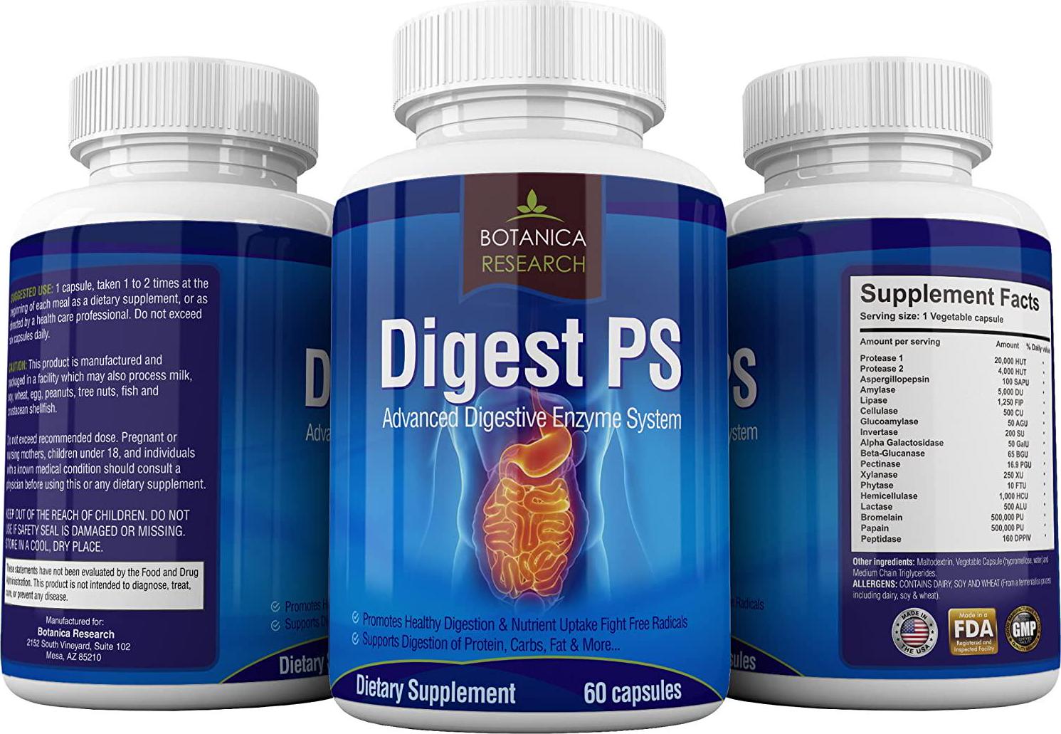 - ? PROMOTES DIGESTION OF NUTRIENTS - Digest PS is formulated with anti-gas food enzyme pills to help with the digestion of proteins, carbs, cellulose, gluten and fats so that you increase your energy level and reduce overall fatigue while you boost your digestive efficiency and promote intestinal health.