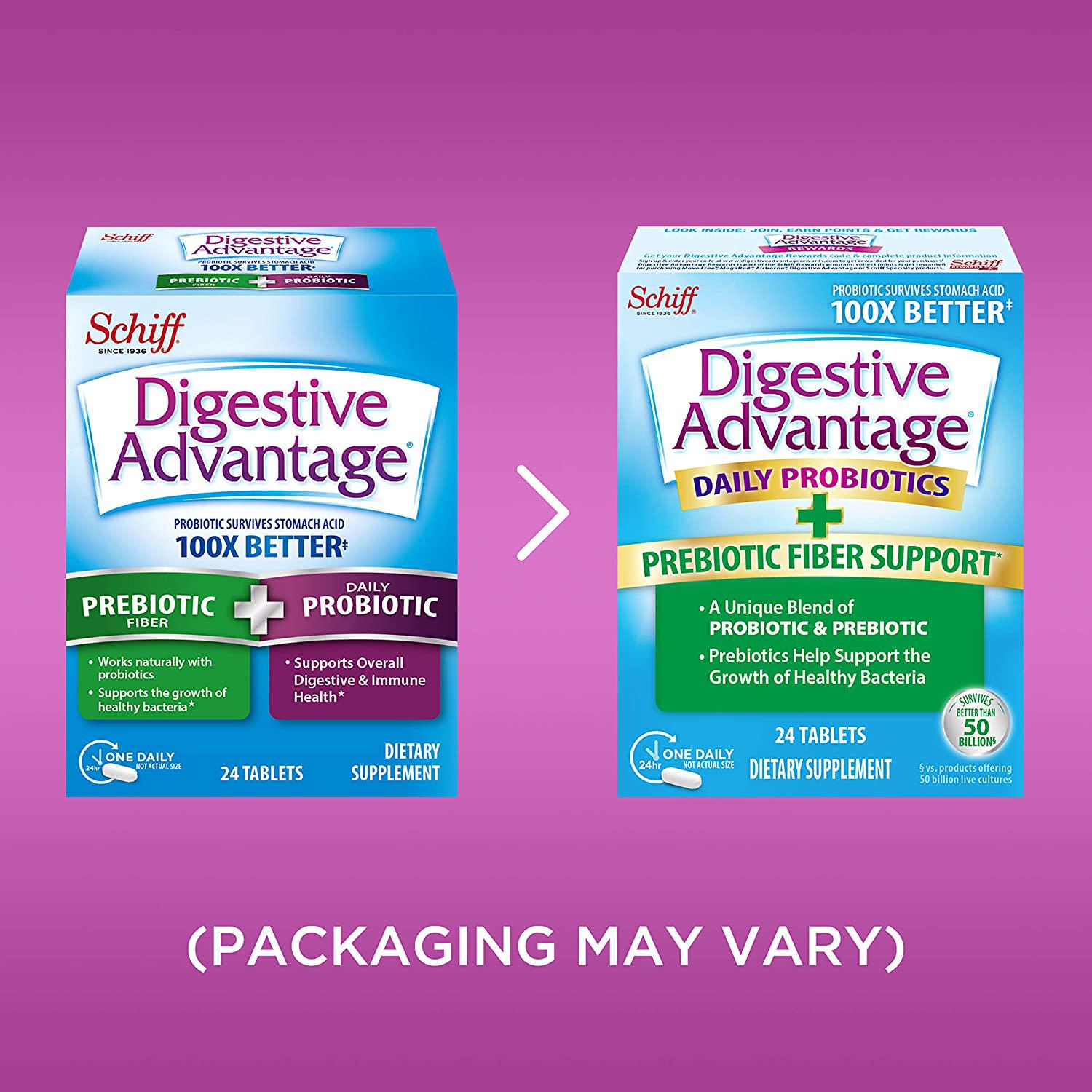 Digestive Advantage Probiotic Plus Prebiotic Fiber - Once Daily Tablets (24count In A Box), Gluten-free Probiotic, 24count (pack Of 36)