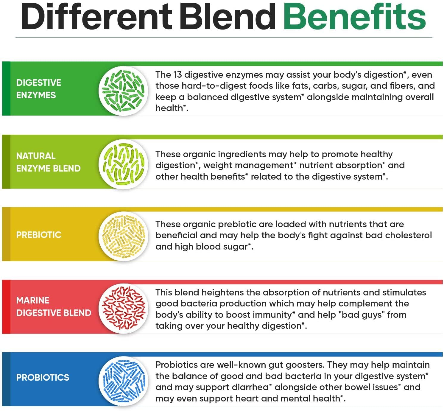 - Goodbye Hard-to-Digest Foods This formula features our Advanced Multi Enzyme System to help you digest fried, spicy, raw, processed food, dairy, protein, salts, carb / carbohydrate, vitamin and acidic diet fruits and veggies. Immune-Boosting Probiotic The gut, biofilm & gallbladder is home to 50% of the body s immune repair response and this supplement contains a powerful 10 billion CFU dose of 10 different probiotic strains clinically shown to enhance preventions & immune system response.