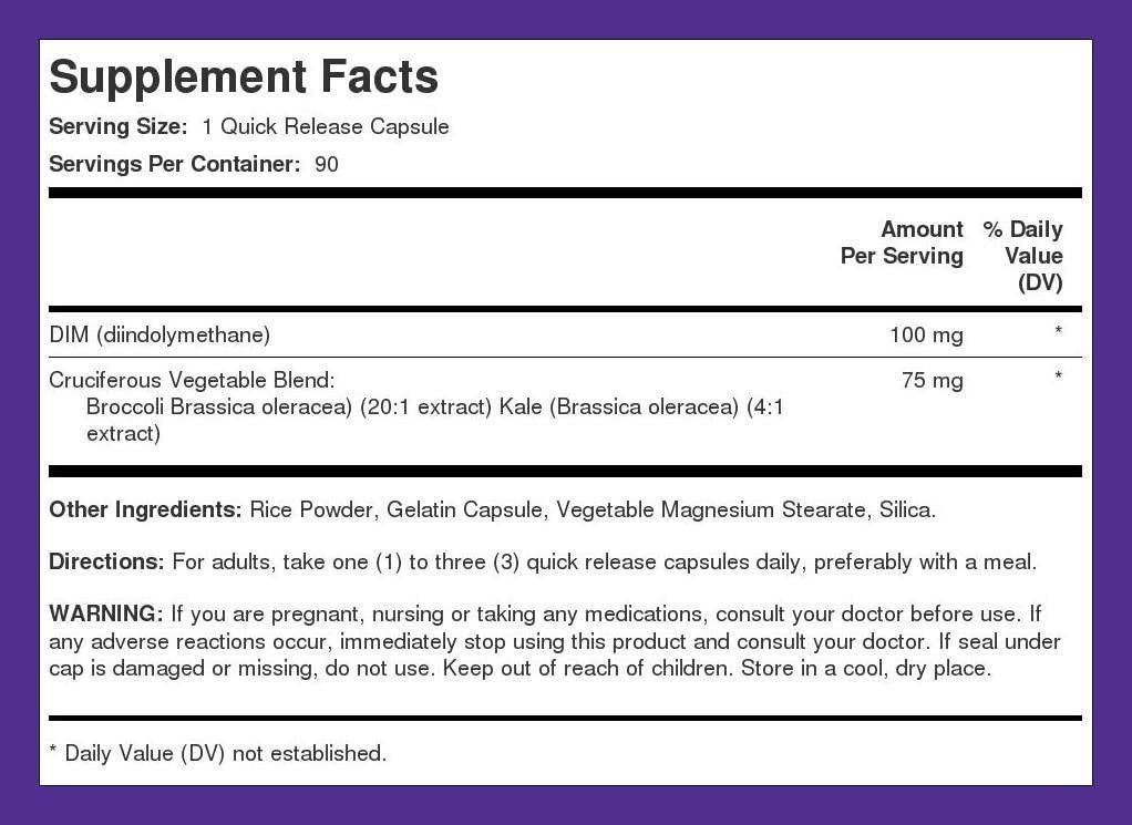 90 capsules, cruciferous vegetables, dim 100mg, hormonal balance