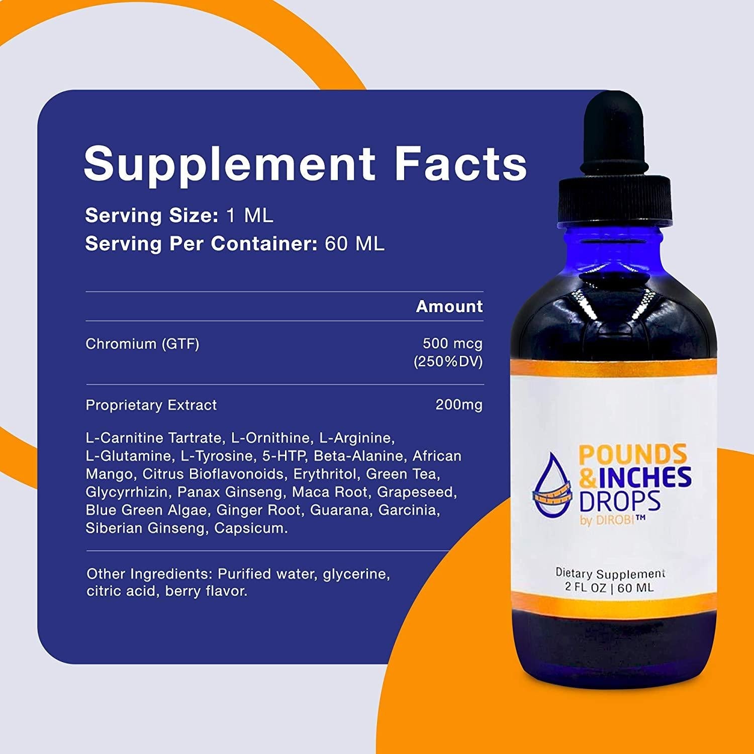 Dirobi Pounds and Inches Weight-Loss Drops, Liquid Weight-Loss Supplement for Women and Men, Diet-Pill Alternative with Delicious Blueberry Flavor