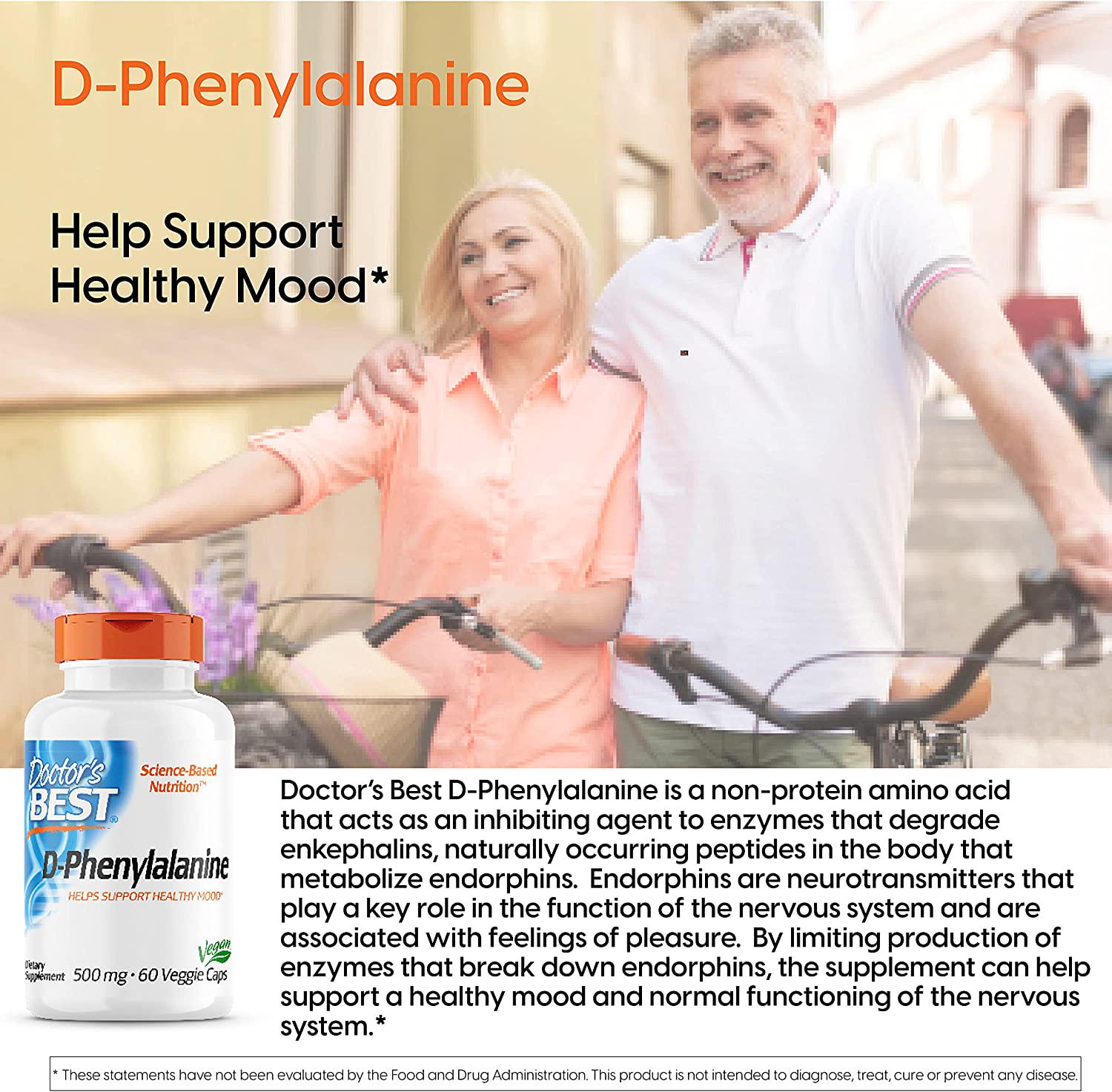 doctor's best d-phenylalanine, gluten free, nervous system, non-gmo, supports mood, usa, vegan