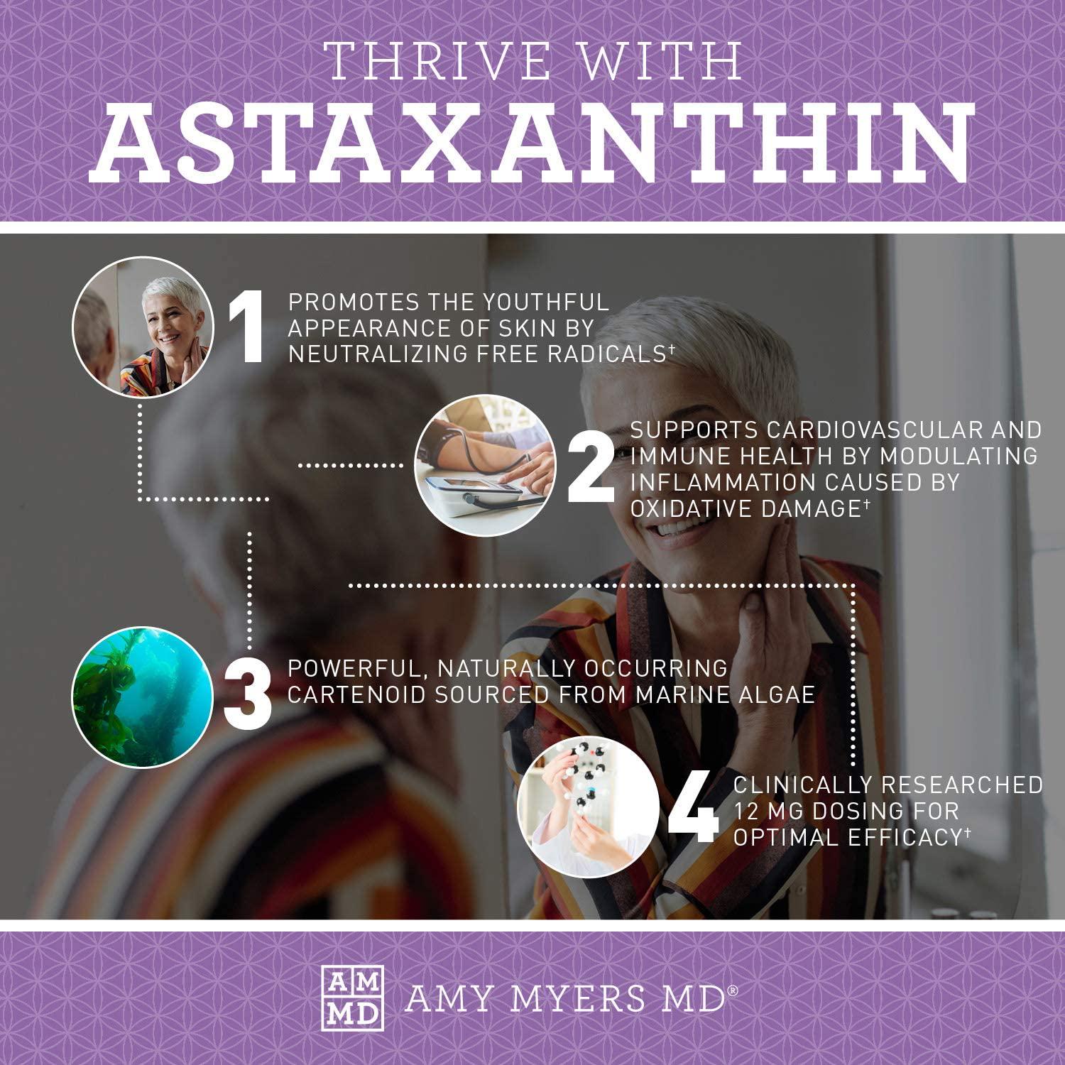 Dr. Amy Myers Astaxanthin 12mg, 60 Softgels - Antioxidant Carotenoid Supplement for Healthy Aging, Skin and Eyes, Immune Health + More - Supports Sports and Cardiovascular Recovery for Men and Women