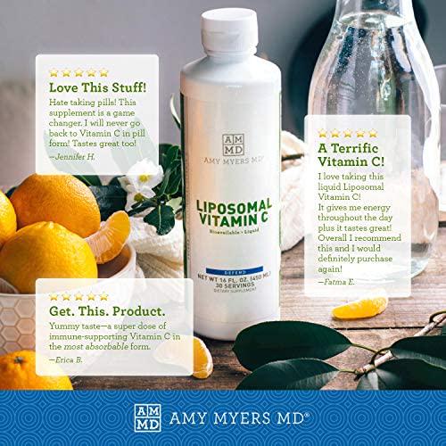 Dr Amy Myers Liposomal Vitamin C 1000mg 16oz Liquid - High Absorption VIT C, Ascorbic Acid - Antioxidant Supplement Supports Immune System and Boosts Collagen Production - Non-GMO - 30 Servings