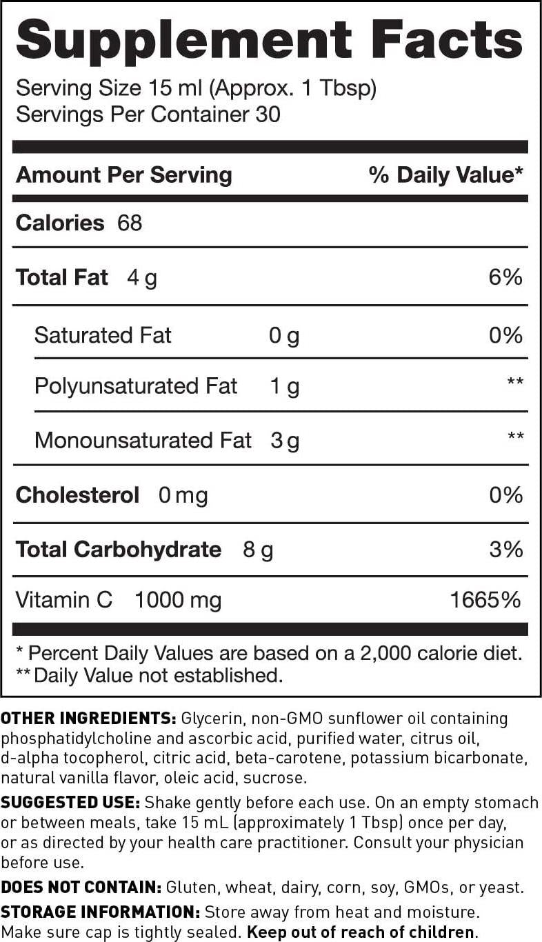 - CUTTING-EDGE LIPOSOMAL FORMULA CONTAINS VITAMIN C BOUND TO BENEFICIAL FATTY ACIDS FOR MAXIMUM ABSORPTION AND BIOAVAILABILITY.