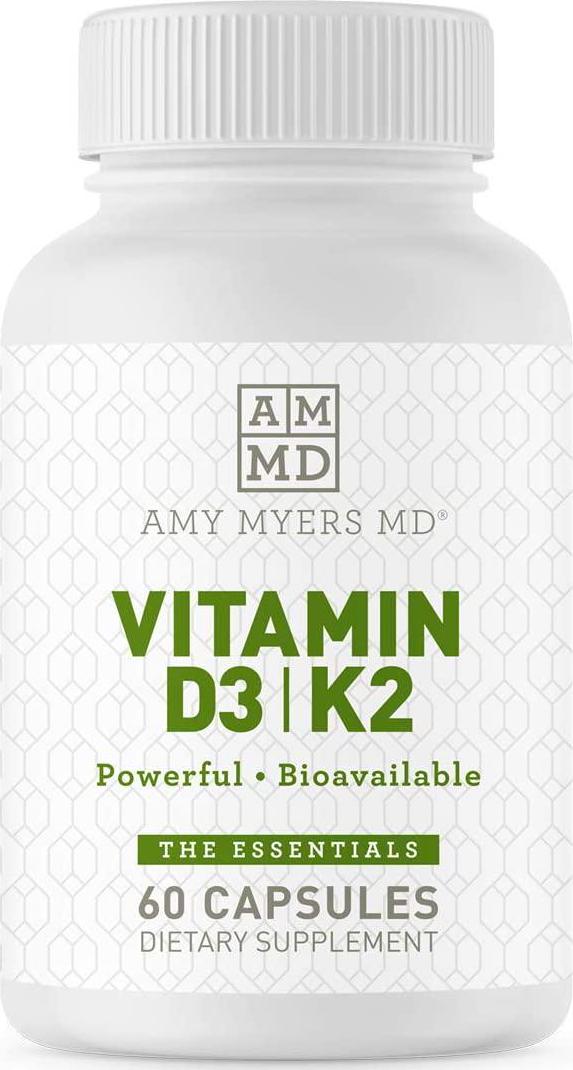 Dr. Amy Myers Vitamin D3 K2 - Vitamin D3 10,000 IU and 45 Mcg of Vitamin K2 MK-7 - Support Immune System Function, Energy Level, Bone Health and Cardiovascular System - Non-GMO, 60 Capsules