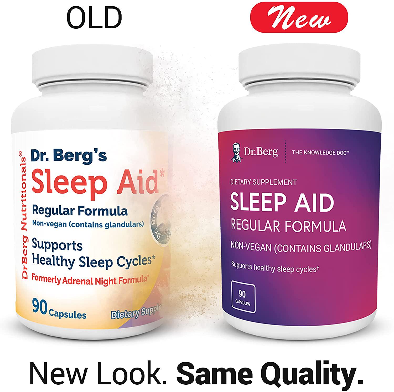 Dr. Berg's Sleep Aid RegularWhat is DIFFERENT between this product (Sleep Aid) and the former product called Adrenal Night? There are 2 differences. We added 100mg of a powerful necessary ingredient to the formula called L-theanine, which is a natural amino acid that can reduce body stress.