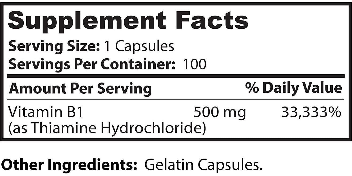 Dr. Clark Vitamin B1 Supplement, 500mg, 100 Capsules