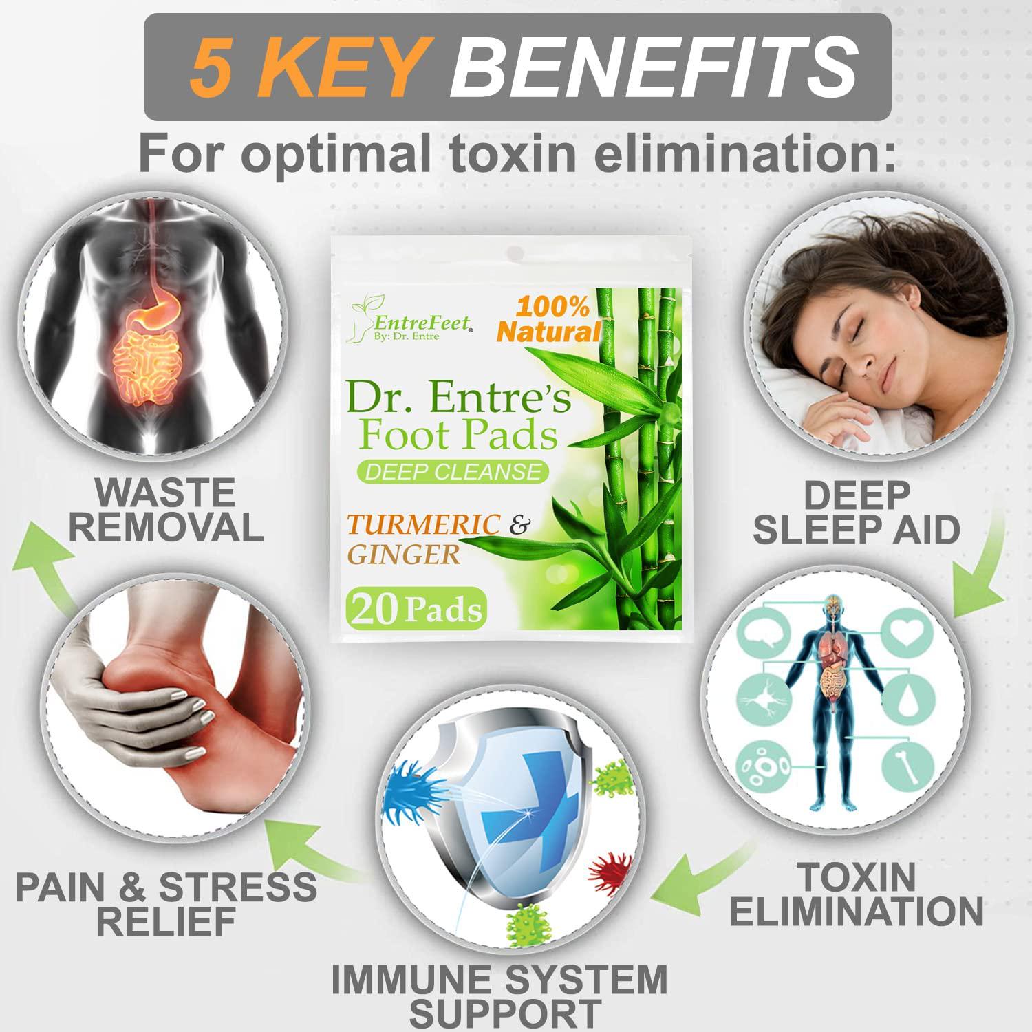 Dr. Entre's Foot Pads: Organic All Natural Formula for Pain Relief, Sleep Aid, Relaxation | Ginger and Turmeric 20 Pack