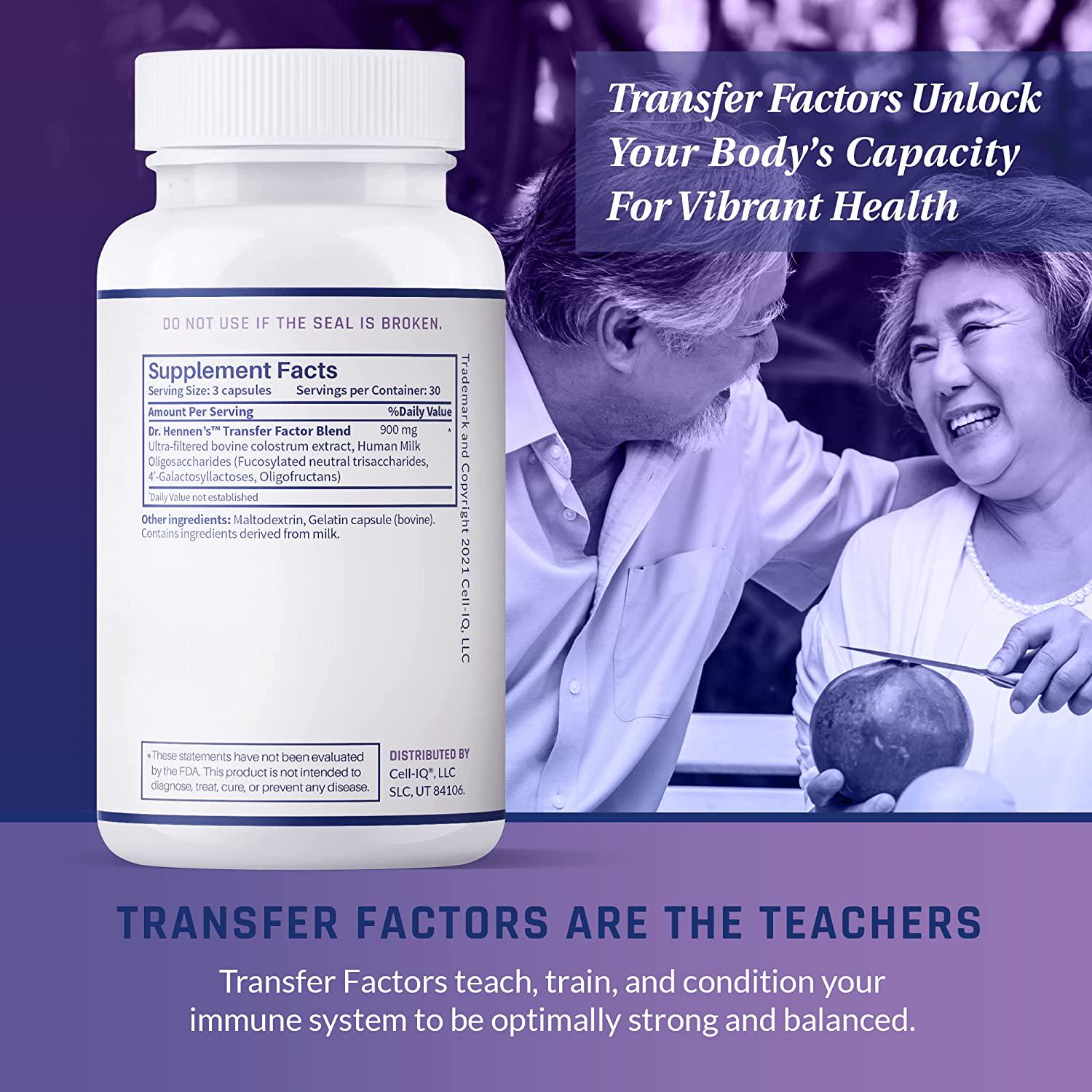 - More Than Transfer Factor: Dr. Hennen’s Transfer Factor contains 600 mg (of the 900 mg blend) of ultra-clean Transfer Factors that are filtered from bovine colostrum extract. But we’ve taken extra care to include other critical ingredients that mimic a human mother’s milk. These Human Milk Oligosaccharides (HMOs) add even more immune-supporting effects.