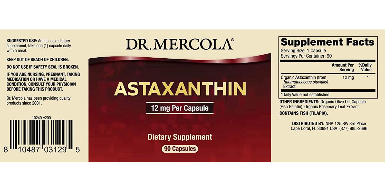- HIGH-QUALITY, ORGANIC ASTAXANTHIN – Our Dr. Mercola Organic Astaxanthin supplement contains 12 mg of high-quality astaxanthin (from Haematococcus pluvialis Extract) – one of nature’s most powerful antioxidants. As a natural carotenoid, the antioxidant properties contained in astaxanthin help protect the body against free radical damage that can lead to premature cellular aging, normal inflammation or other health issues.*