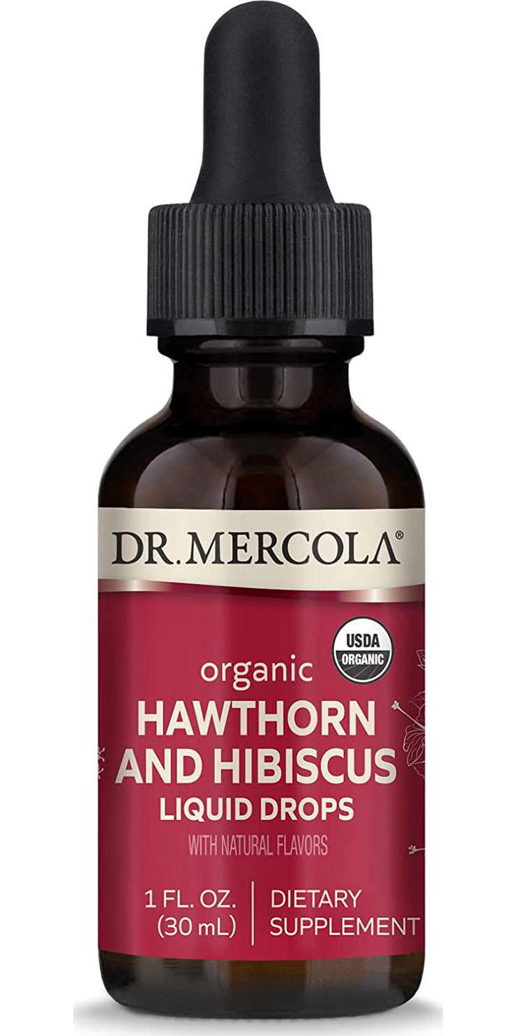 Dr. Mercola Organic Hawthorn and Hibiscus Liquid Drops Dietary Supplements, 30 Servings (30 Droppers), Non GMO, Gluten Free, Soy Free, USDA Organic