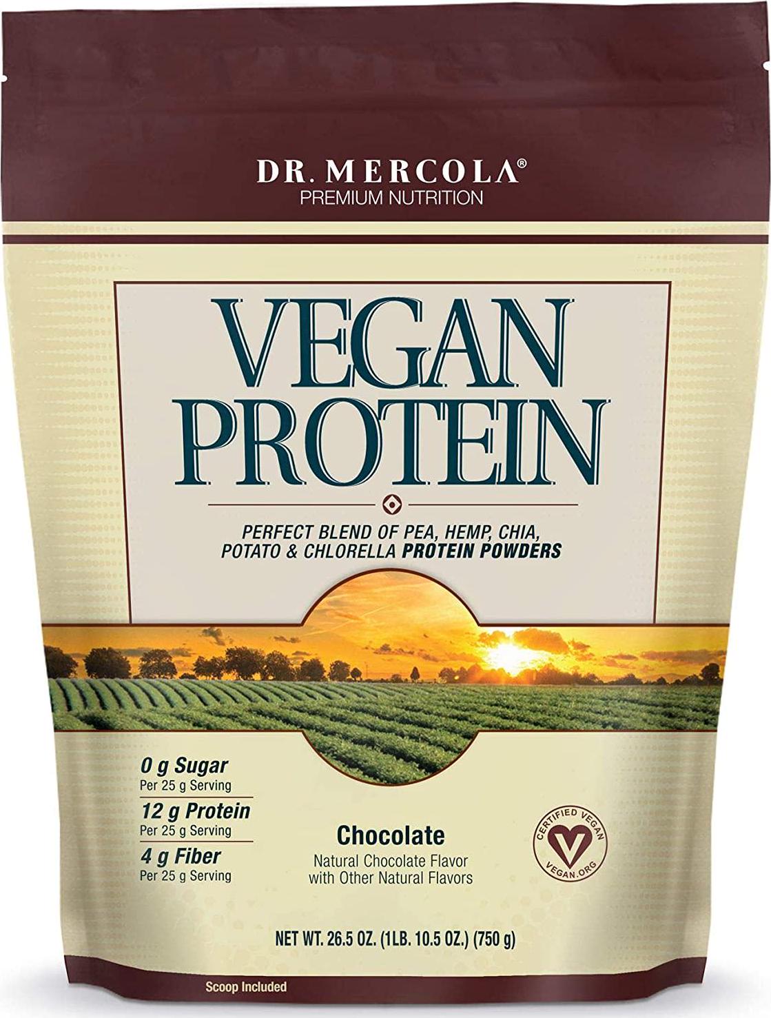 Dr. Mercola Vegan Protein Chocolate - Perfect Blend Of Pea, Hemp, Chia, Chlorella and Potato Proteins - Gluten-Free - Naturally Flavored - 1 lb 6.5 oz (750g)