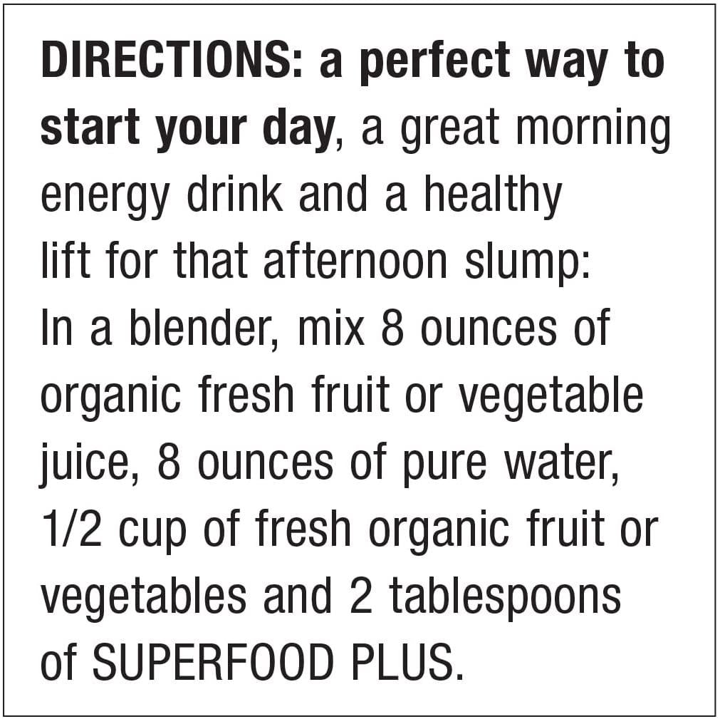 - SUPERFOOD POWERHOUSE: Contains 15 of the world's most powerful superfoods. One serving of SuperFood Plus delivers an unrivaled dose of rapidly assimilating vitamins and minerals while offering the body an extraordinary powerful supply of enzymes and nutrients packed into one source.