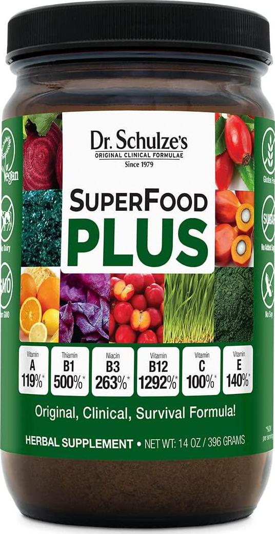 Dr. Schulze s - SuperFood Plus | Vitamin and Mineral Herbal Concentrate | Daily Nutrition | Gluten-Free and Non-GMO | Vegan | 14 Ounce Powder | Packaging May Vary
