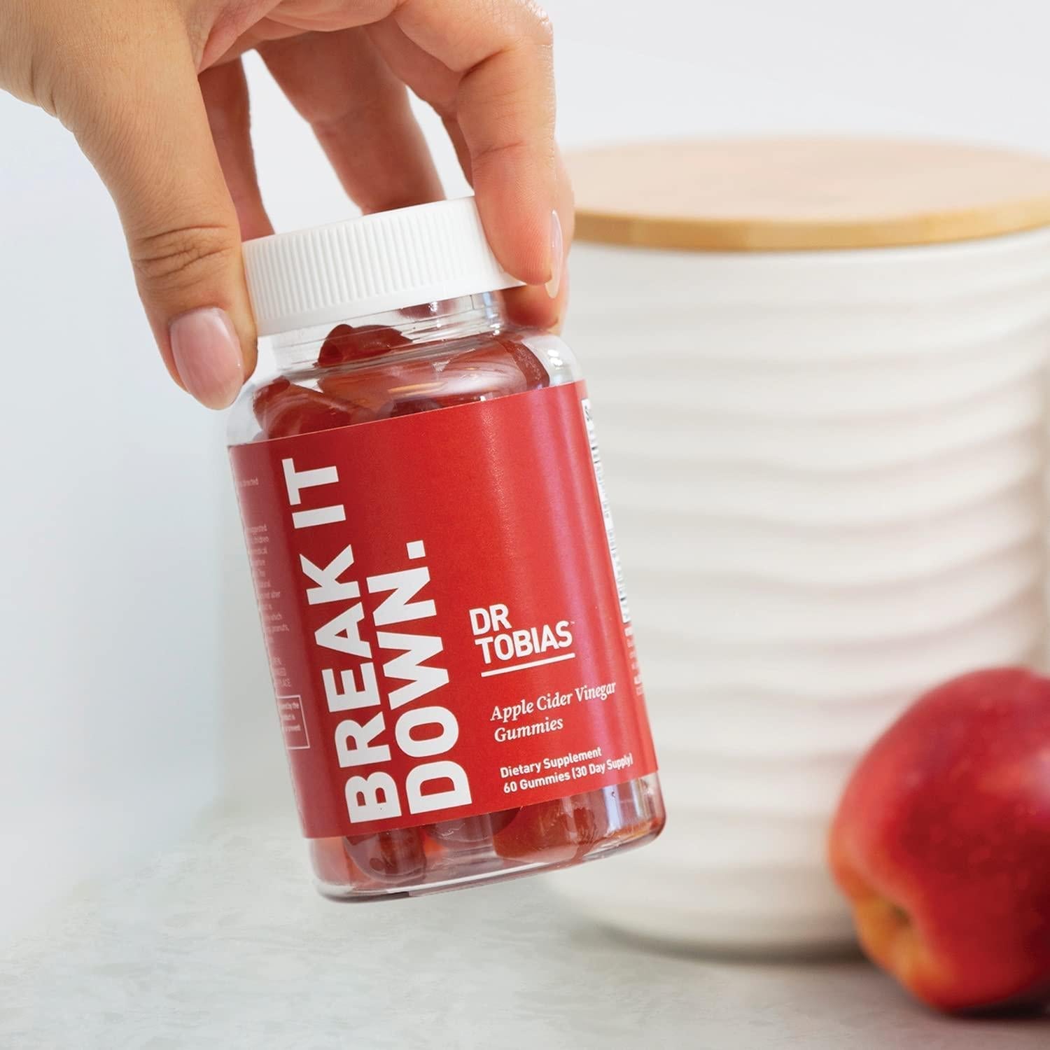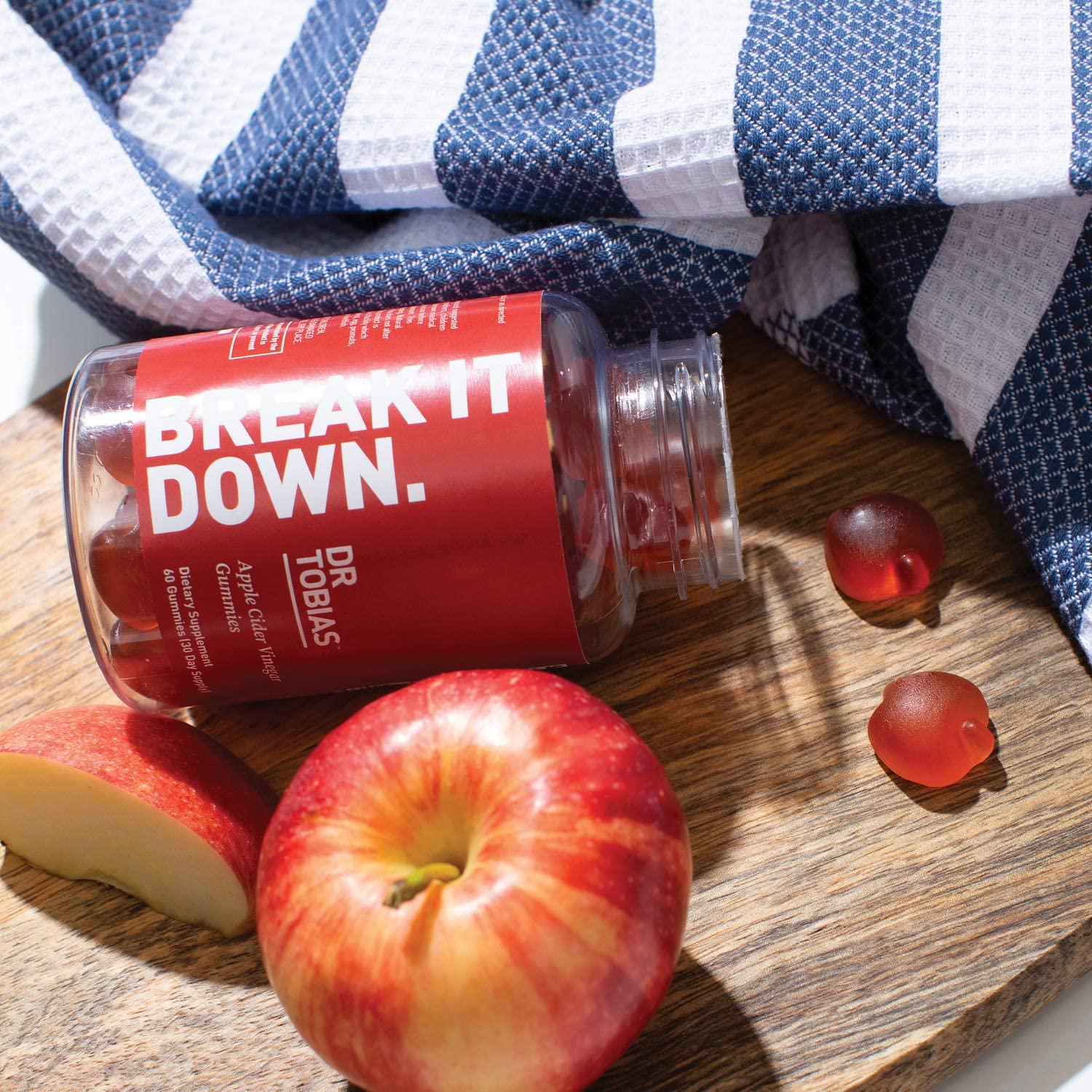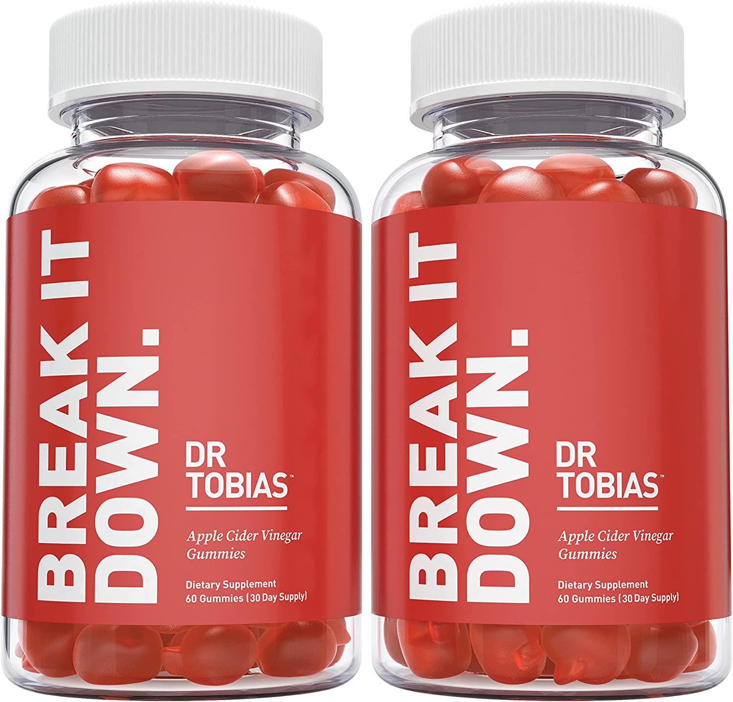 Dr. Tobias Apple Cider Vinegar Gummies, Supports Gut Health, Cleanse and Detox, Includes 500mg Apple Cider Vinegar with Mother, Folate and B12. Vegan and Gluten-Free, 2 Packs of 60 Gummies Each (1 Daily)