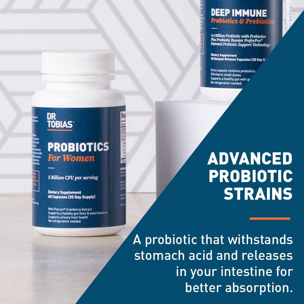 Dr Tobias Probiotics for Women - Deep Immune for Women - with Organic Cranberry Extract for Urinary Tract Support (60 Count)