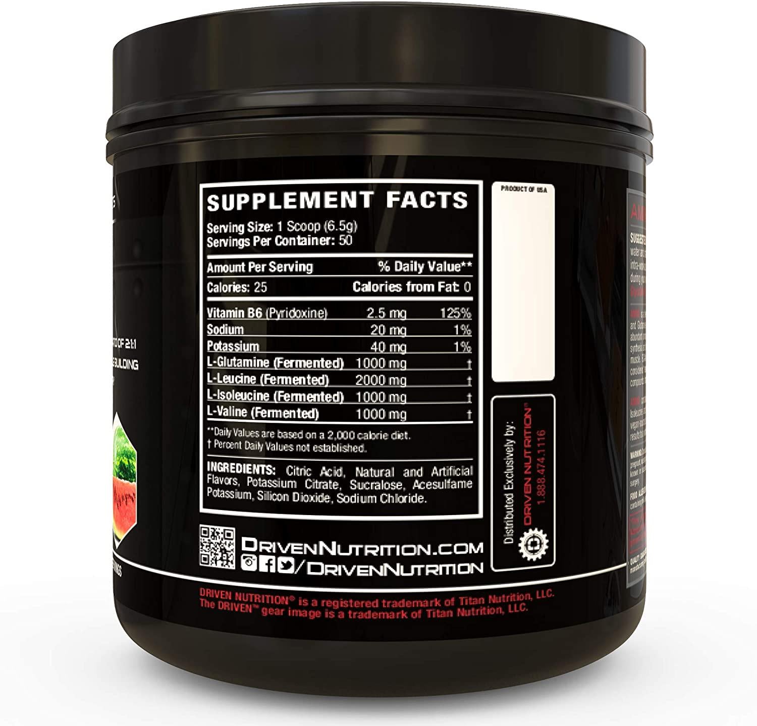 Driven Amino-BCAA Enhanced with Glutamine- Aids in Muscle Recovery, Increase Muscle Protein Synthesis, and Improve Lean Body Mass-Perfect 2:1:1 BCAA Ratio (Watermelon)