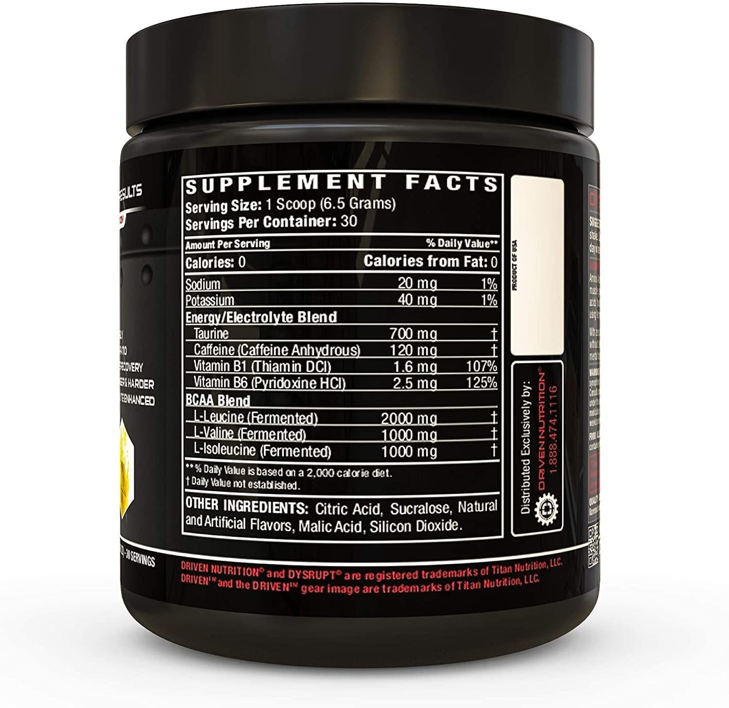 Driven DYSRUPT Pre-Workout Powder - BCAAs, Caffeine and Electrolytes - Low Carb/Sugar Free Energy Drink Supplement - Increases Fat Burning, Physical, and Mental Endurance for Focus and Building Muscle Mass