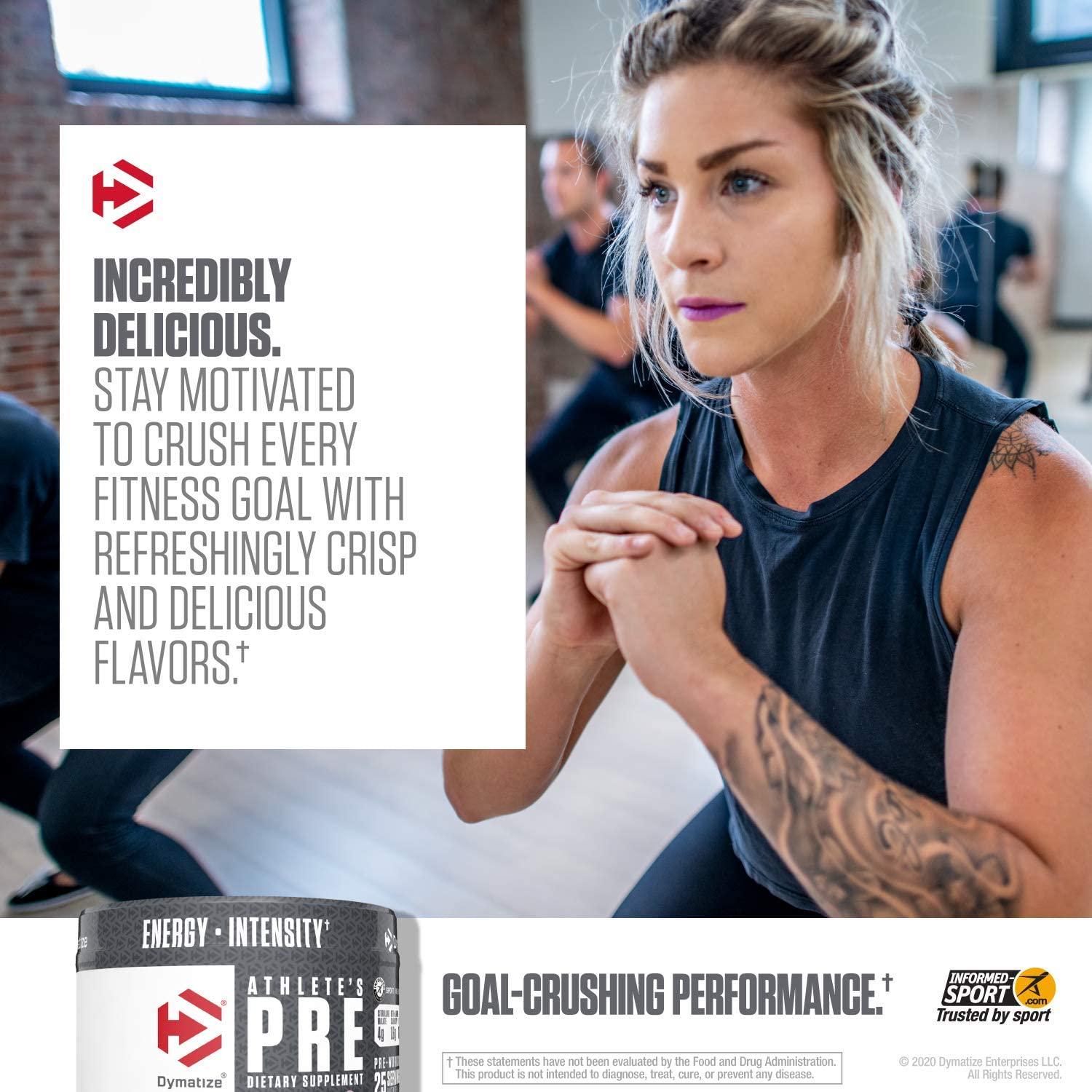 Athlete's pre is a pre-workout formula designed to make every workout count. Amplify training intensity with Dymatize Nutrition Nutrition athlete's pre, complete with Citrulline Malate, TeaCrine, beta-alanine and caffeine. It mixes clean, tastes delicious and goes down smooth.
