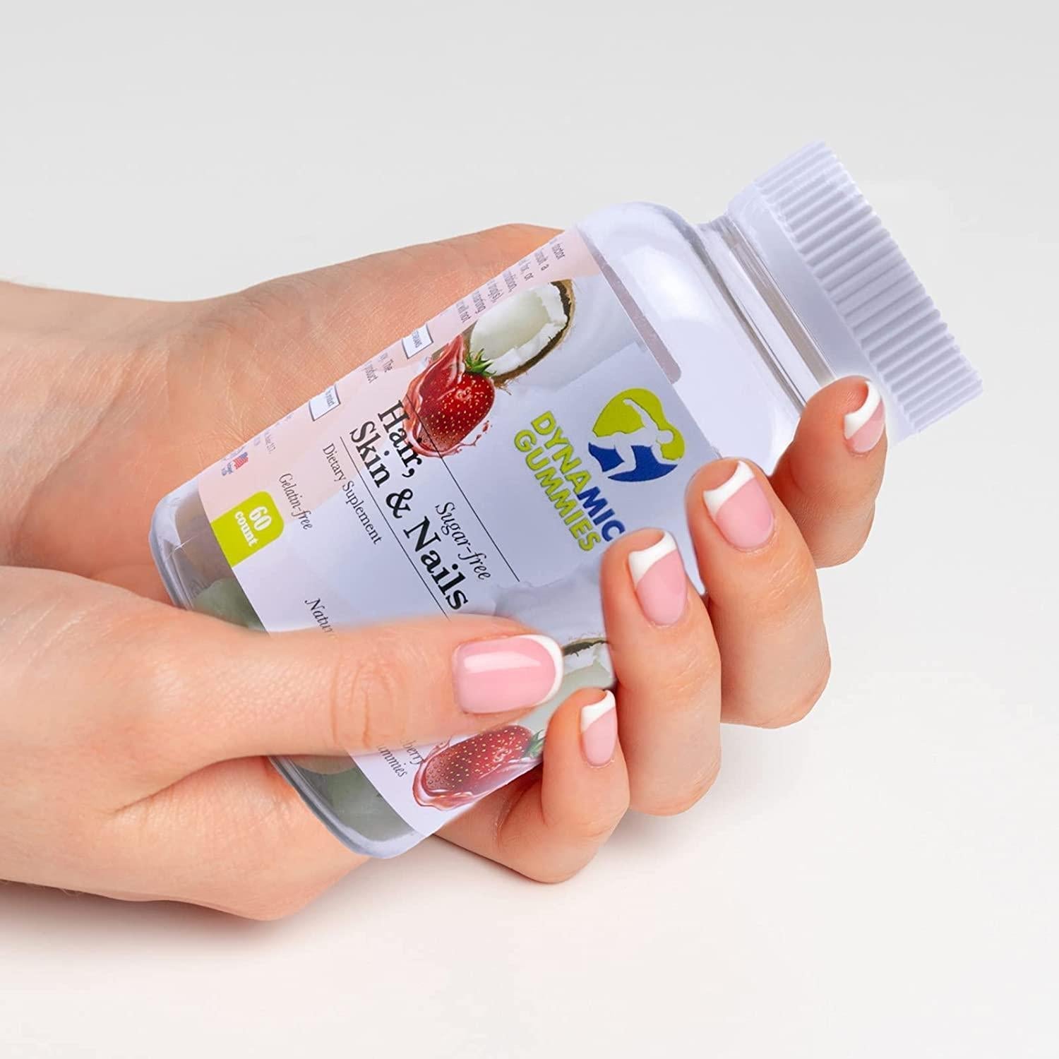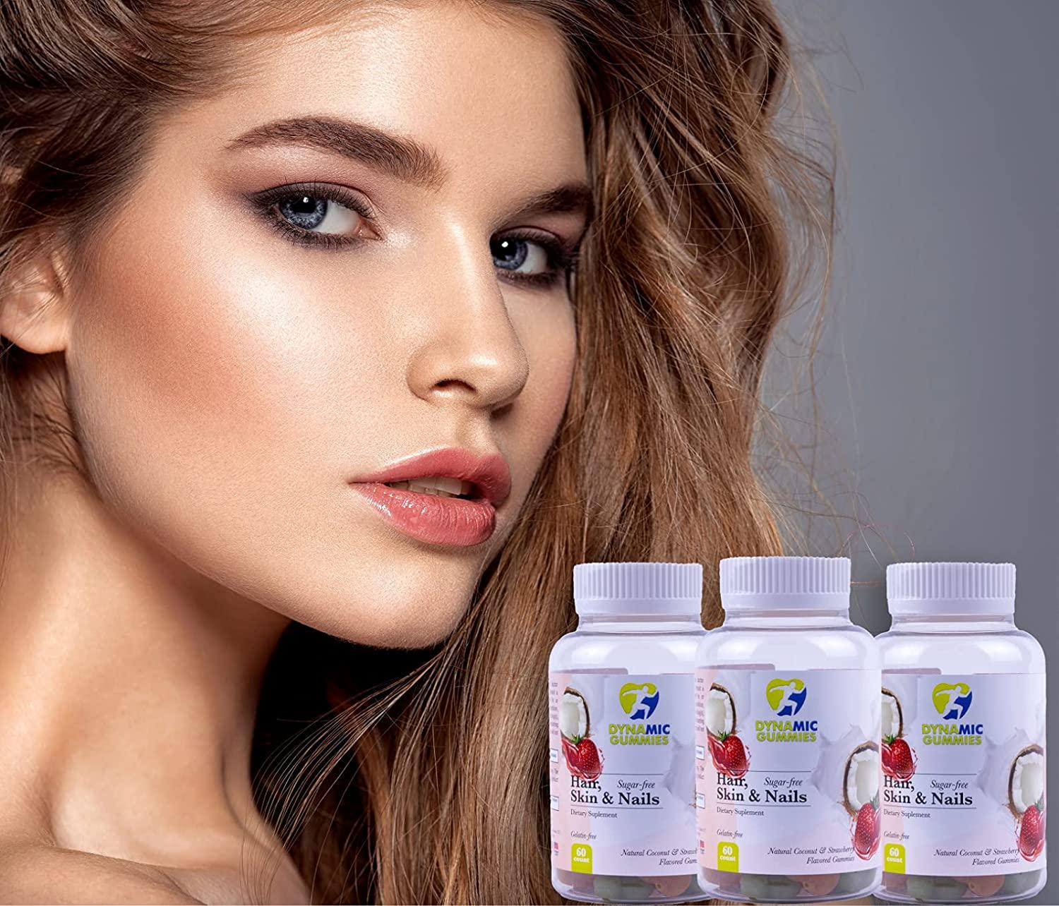 DYNAMIC GUMMIES Hair Nails and Skin, Sugar Free Supplement for Women, Vitamin C, A, D3, E, B6 + Biotin and Folic Acid, Natural Fruit Flavors, 60 Gummies
