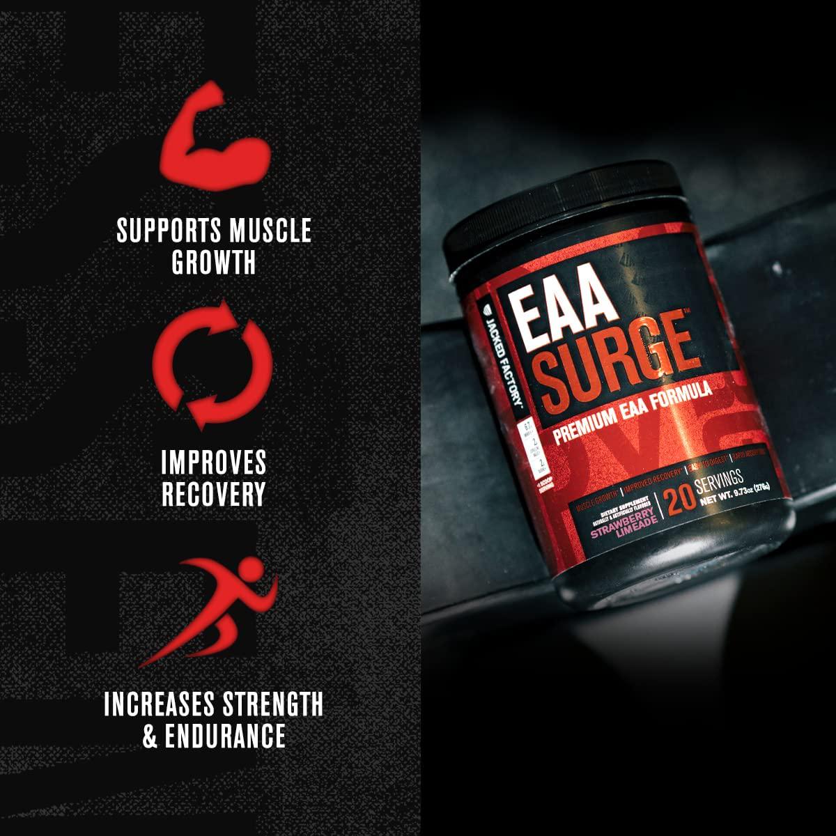- Support Muscle Growth, Recovery, & Endurance: EAA Surge feeds your muscles with the most crucial building blocks of muscle tissue: essential amino acids. Having all 9 EAAs available (in the proper ratio) is what sets the stage for muscle growth, recovery, and endurance. In contrast to protein powder and many amino acid powders, the Amino9 matrix in EAA Surge provides elite fermented amino acids that are rapidly absorbed, easy on the stomach, and refreshing to drink while training