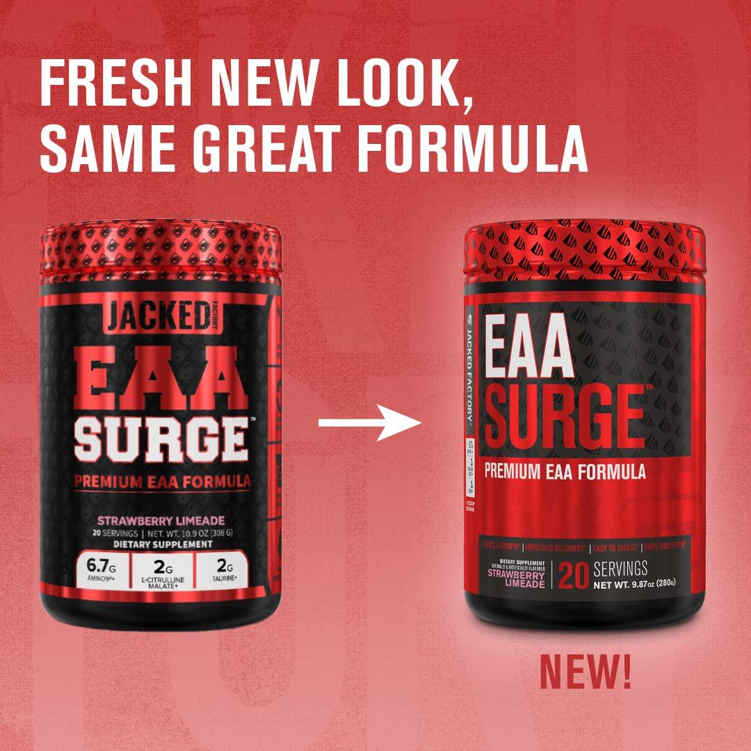 EAA Surge Premium EAA Supplement - 9 Essential Amino Acids Intra Workout Powder w/L-Citrulline, Taurine, and More for Muscle Building, Strength, Pumps, Endurance, Recovery - Strawberry Limeade, 20sv
