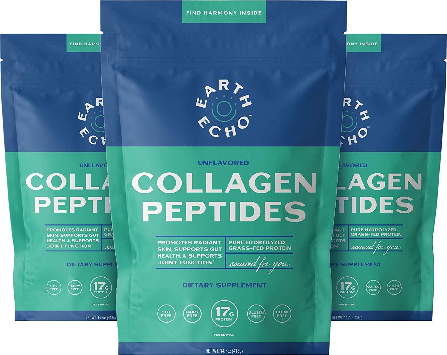 Earth Echo: Collagen Peptides - Pure Grass-Fed Protein Powder for Keto Food, Snacks and Beverages - 66 Servings (3 Pack) - No Gluten - Hydrolyzed for Better Absorption - Unflavored