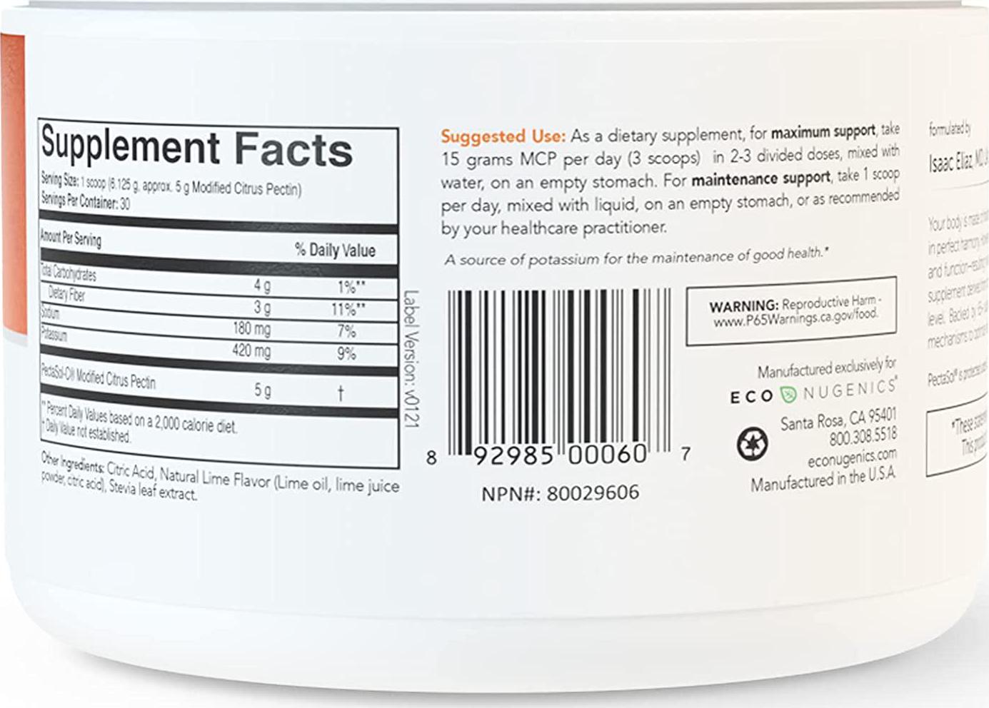 ecoNugenics PectaSol Modified Citrus Pectin Cellular Health and Immune System Supplement - Lime Infusion Powder - Maintain Healthy Galectin-3 Levels - Cardiovascular Support (183.75 Grams)