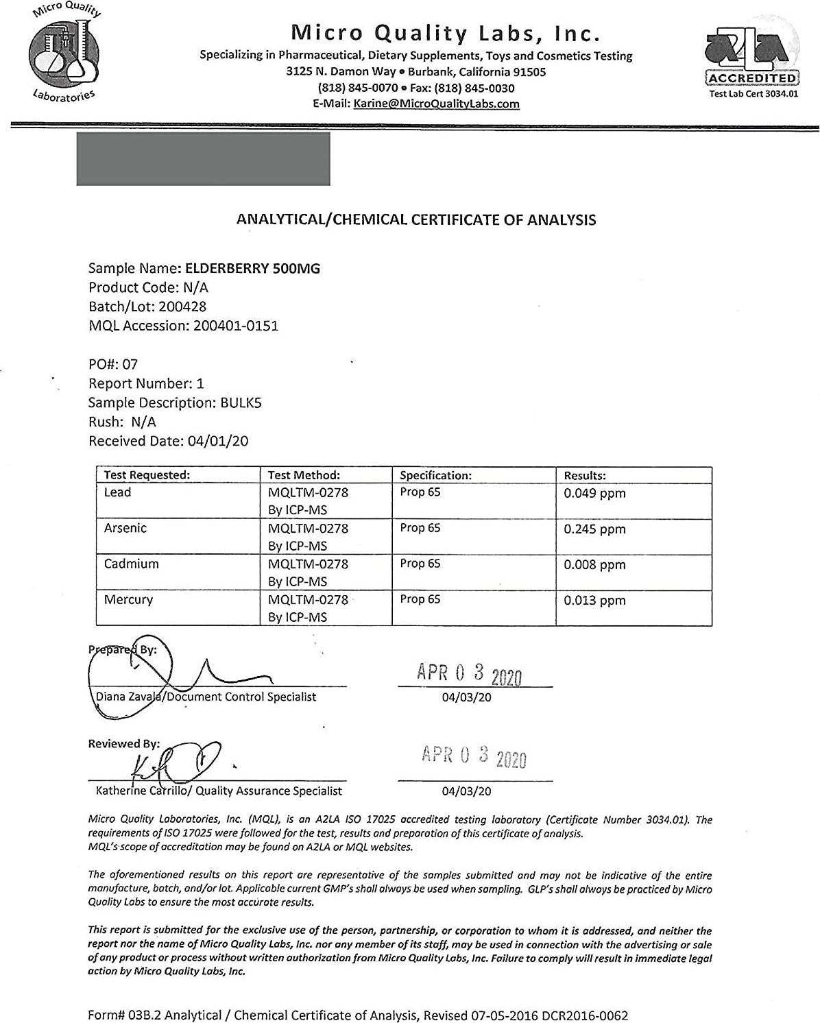 - 3RD PARTY TESTED | We tested our elderberry extract at Eurofins (world's largest testing lab) for common heavy metals