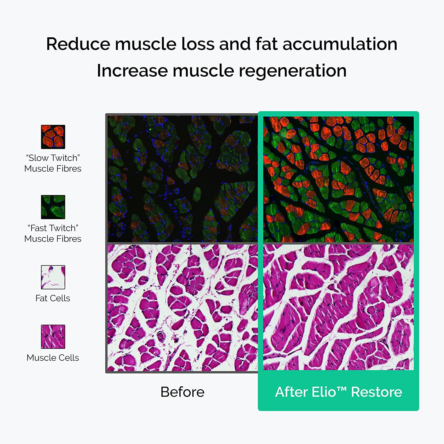 - TRANSFORM CELLULAR HEALTH: Regenerate your muscle cells and transform your cellular health with Elio Restore. Healthy muscle cells are vital for a healthy life and are essential to restoring cellular energy and metabolism.