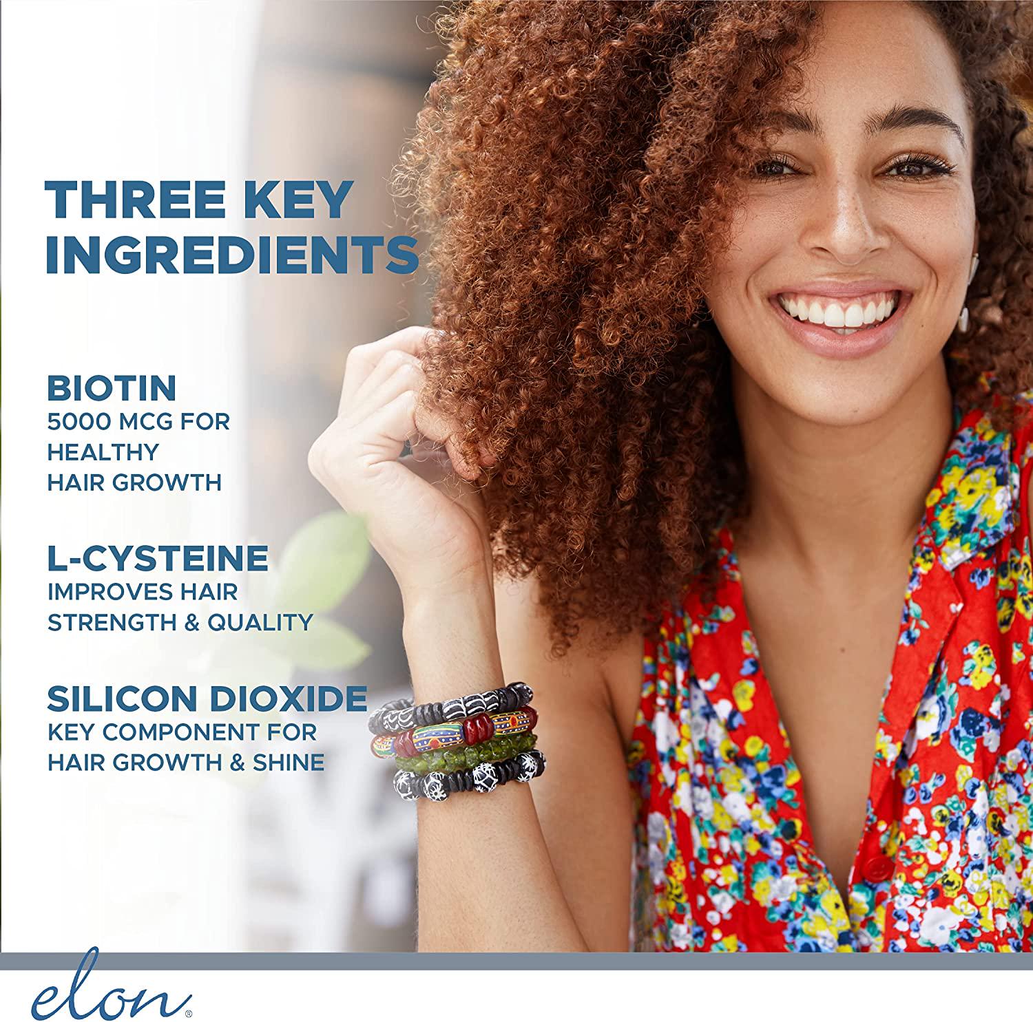 - NOURISHING INGREDIENTS -- Formulated with 5000 mcg of biotin, L-cysteine, and Silicon Dioxide, Elon Matrix 5000 improves hair strength and growth in just six to eight months of continuous use.