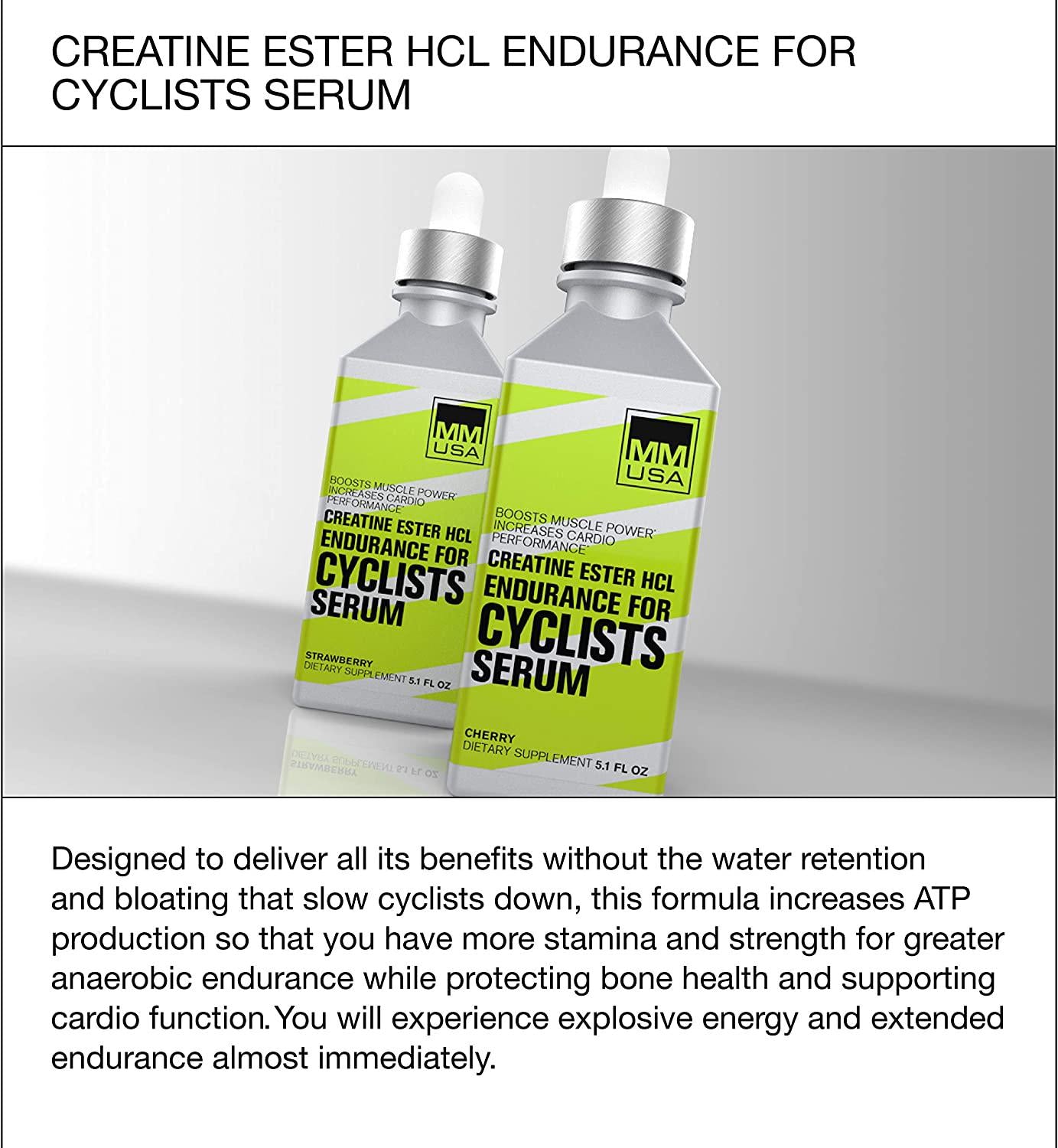 • ULTIMATE CYCLING BOOST: Synergistically engineered to deliver extended endurance for serious cyclists, Creatine Ester HCL Endurance for Cycling is a liquid creationol-o-phosphate based creatine serum which provides you with remarkable focus and stamina when and where you need it. MMUSA s original 100% bio-available formula is perfect for faster runs, boosting stamina, strength and aiding the joint protection with every single run. Take your running performance on a new level!