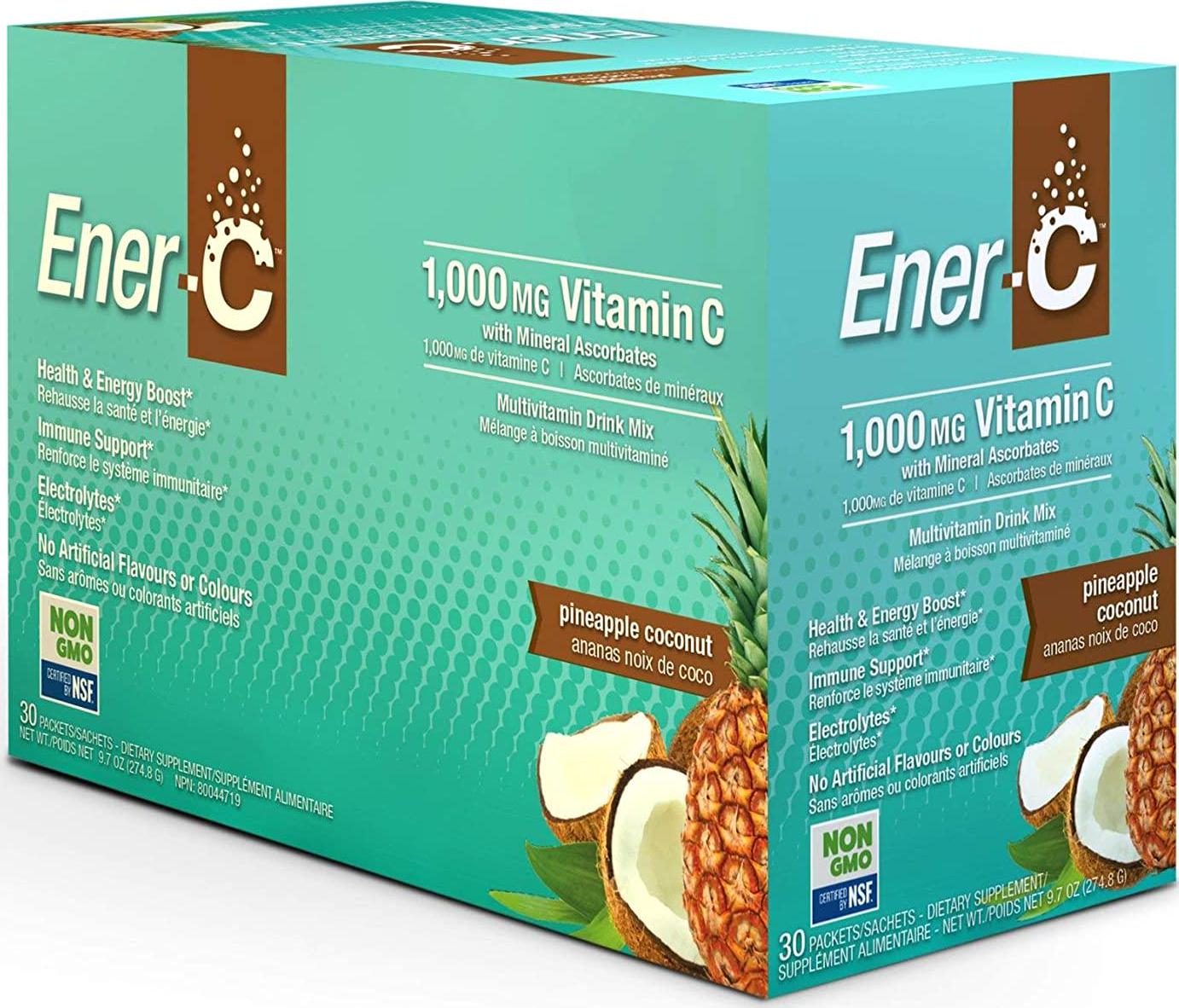 Ener-C Effervescent Multivitamin Non-GMO Gluten-Free Vegan Powdered Fruit Juice Drink Mix for Immune Support and Hydration with Electrolytes Pineapple Coconut Flavor 30 Packets