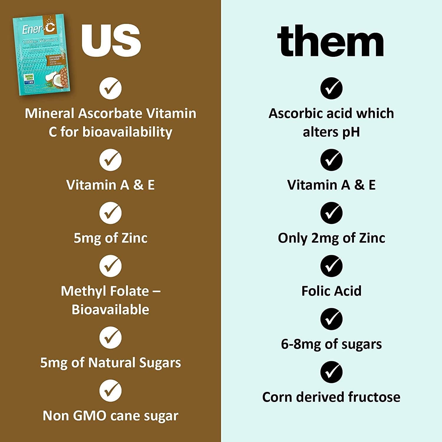 - HEALTH AND ENERGY BOOST: Ener-C Multivitamin Drink Mix is your natural supplement for health and energy boost. The Ener-C has a naturally refreshing taste and is a caffeine-free,low sugar drink. Ener-C contains electrolytes which helps you hydrate,replenish and provides support to maintain and boost your immune system and thyroid support, antioxidants, and so much more!