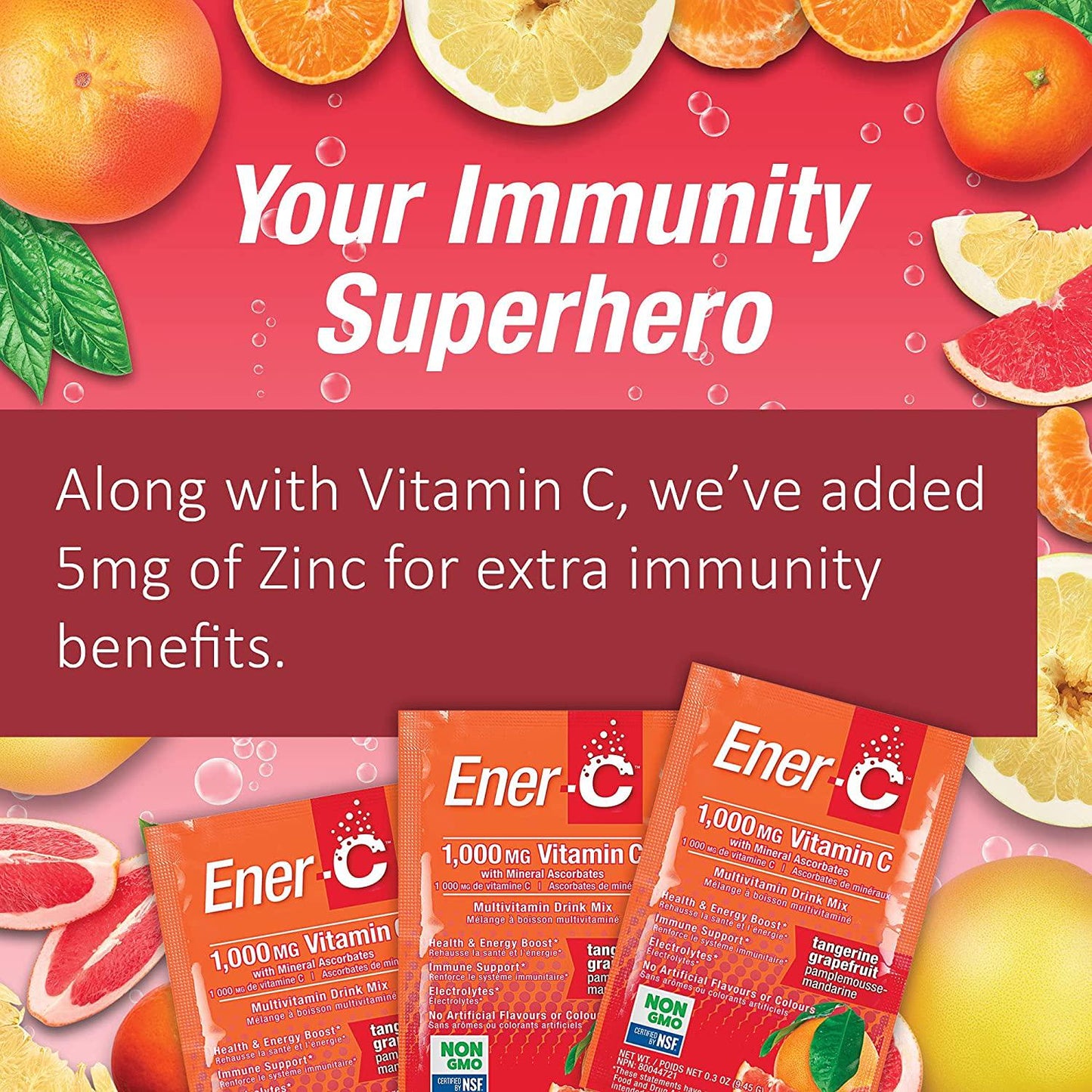 - ENER-C VITAMIN C, ZINC AND 24 VITAMINS & MINERALS: Delicious, all natural Vitamin drink mix with 1000mg Vitamin C & 5mg Zinc; Flavored with real fruit juice powders; Pack of 10 Orange, 10 Lemon Lime & 10 Raspberry Sachets, 30 Vitamin Drink Packets