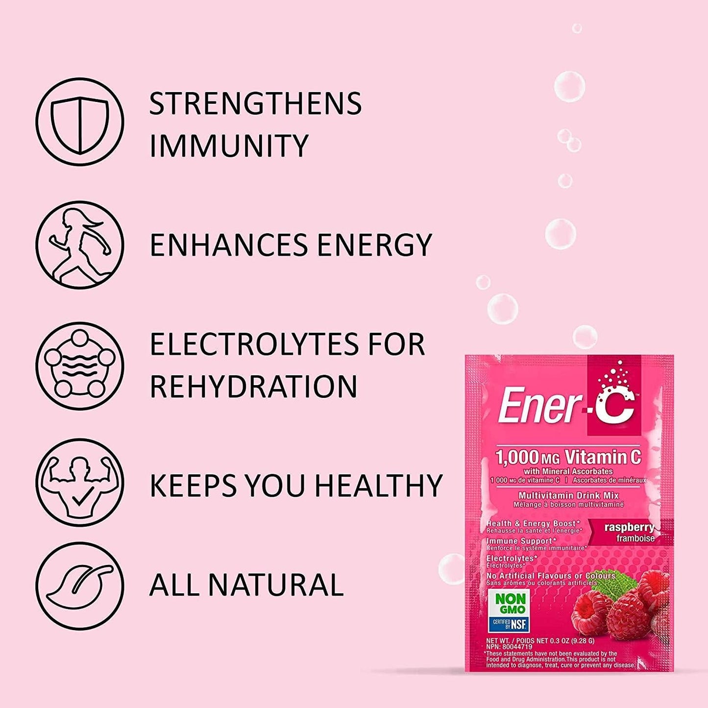- MULTIVITAMIN EFFERVESCENT DRINK MIX: Ener-C is deliciously effervescent, all-natural, comes in 7 great tasting fruit flavors with 26 vitamins & Minerals; Try 1-2 packets daily to improve immunity; Pour, Fizz, Refresh