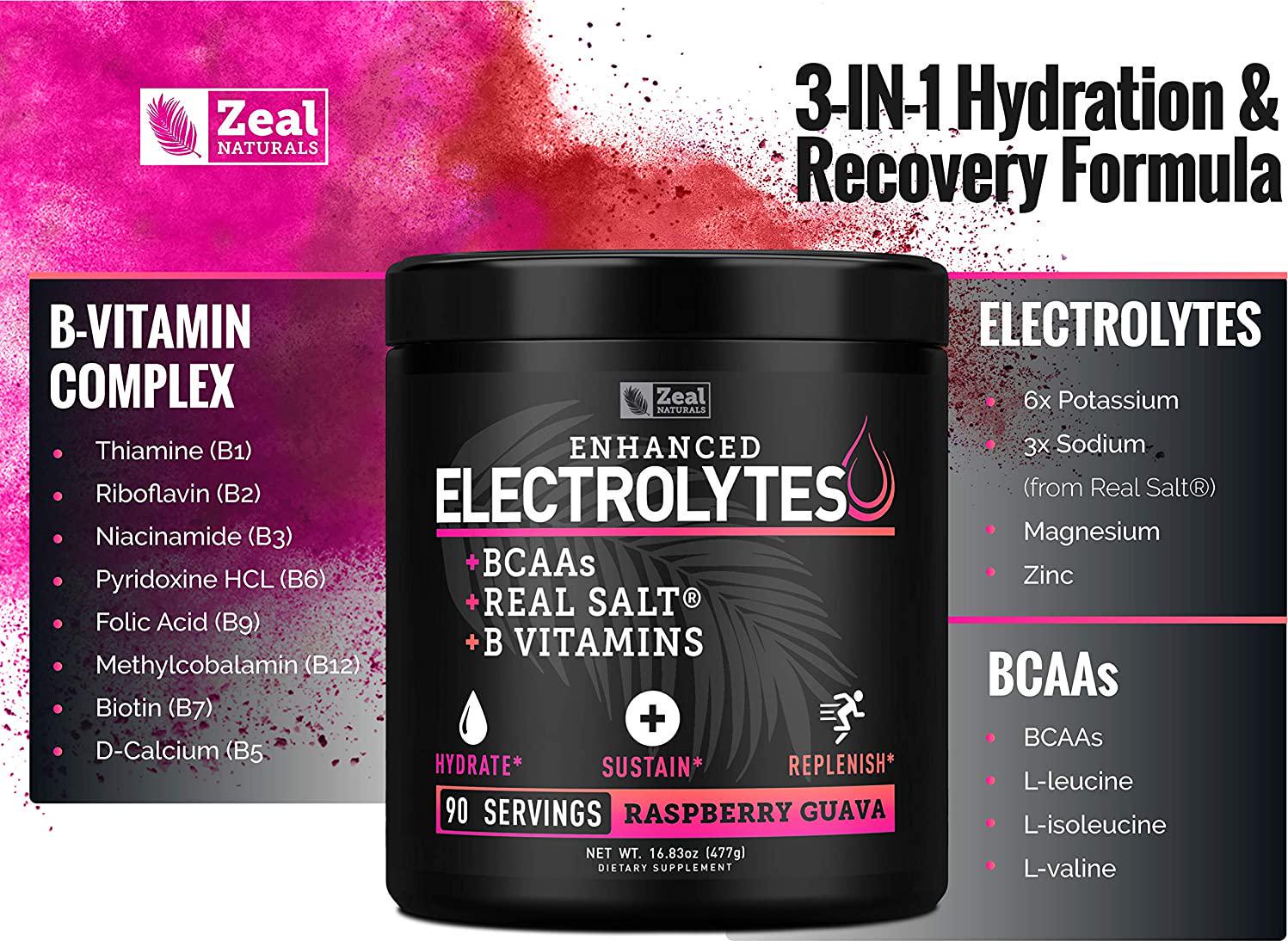- Enhanced Electrolytes for Hydration & Recovery. Enhanced with BCAAs, Real Salt, and B-Vitamins for hydration, recovery, and stamina support.*