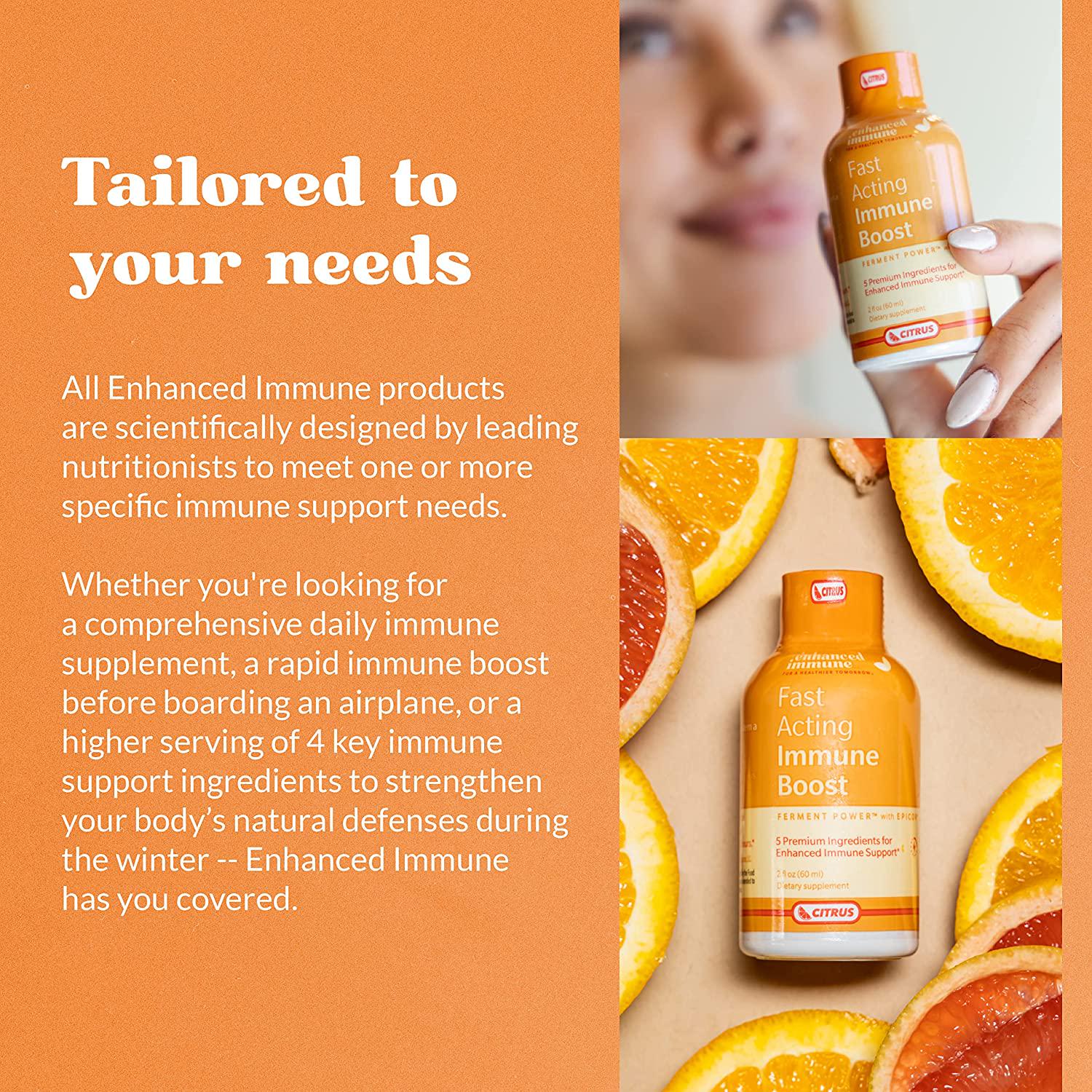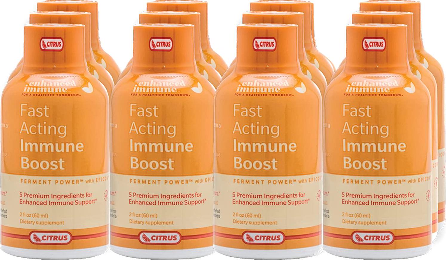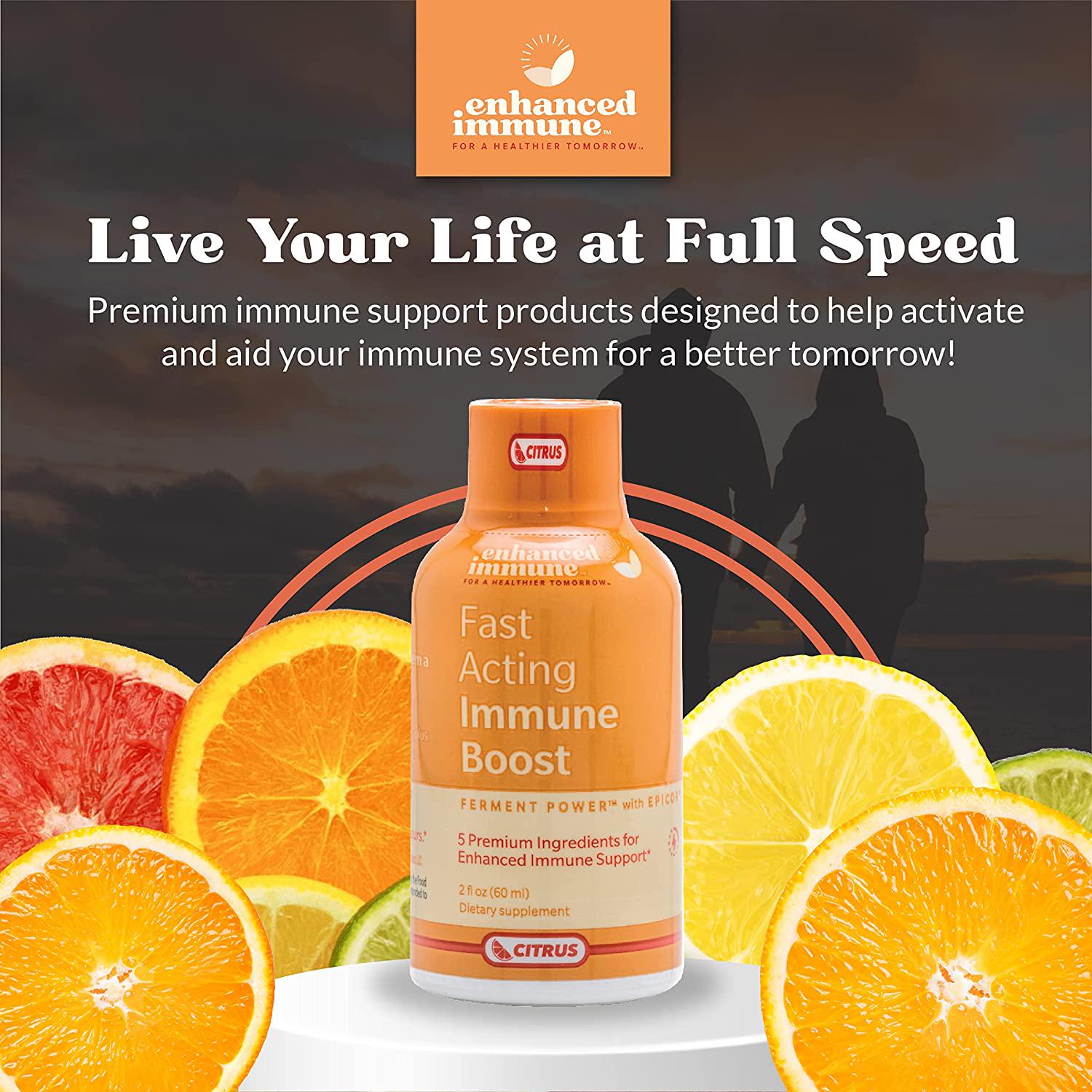 Enhanced Immune Fast Acting Immune Boost - Immunity Shots with Vitamin C and Zinc, Vitamin D, Vitamin B12 and EpiCor Powder - Instantly Supports Body s Natural Defense System - Citrus, 12 Pack