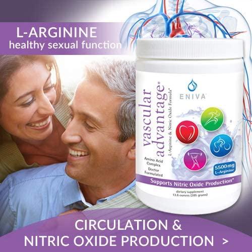 Pre Workout Nitric Oxide Powder. EXTRA STRENGTH: 6,950mg Power Amino Blend per serving, including 5500mg of L-Arginine and 250mg of L-Citruline. Supports NITRIC OXIDE production, Power, Strength, Muscle Development, Circulation, Sexual Health and Cardiovascular Health. PRE WORKOUT BLEND contains robust Amino Blend of L-Arginine, L-Citruline, L-Isoleucine, L-Leucine, L-Valine, L-Ornithine, L-Proline, Gamma Oryzanol and Transferulic Acid. Supports healthy sexual function in both men and women. Doctor Formulated. Made in the USA in Eniva's nGMP Facility. Vascular Advantage is a specialized formulation of 5500mg of free form L-Arginine plus the addition of a proprietary blend of 9 different amino acids and antioxidants. It supports nitric oxide production, vascular integrity, . High-Potency L-Arginine Blood Vessel Health Formula. Nitric oxide is the key regulatory molecule for circulation and arousal, as well as plays a role in multiple immunologic and physiologic body processes to maintain healthy living and energy. Research indicates L-Arginine and L-Citruline help support the production of nitric oxide. Vascular Advantage contains the following:L-Arginine: Critical precursor amino acid needed for nitric oxide production.L-Citrulline: An amino acid that recycles partially used L-Arginine for continued nitric oxide production.Vitamin C: A vitamin critical for the structural integrity of blood vessels, as well as a potent antioxidant.A4 Proprietary Blend: An adjuvant amino acid and antioxidant combination designed for formula stability and to provide additional pathway benefits of energy and muscle strength. Directions: Adults: 4 Scoops. Daily.Dilute in 12-16 ounces of water. Take on an empty stomach. Do not consume with food. Storage Directions: Avoid freezing and heat.