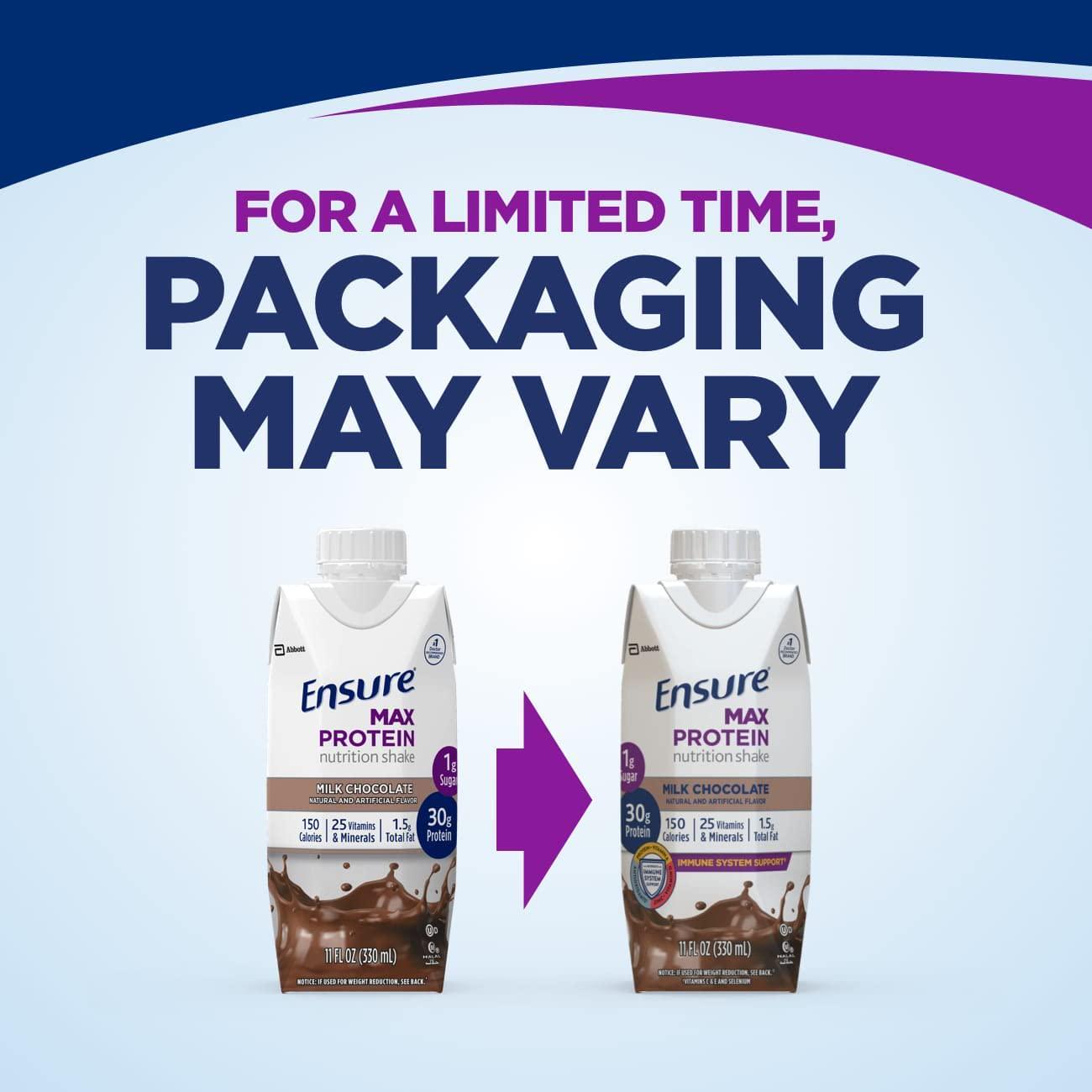 Ensure Max Protein Nutritional Shake with 30g of High-Quality Protein, 1g of Sugar, High Protein Shake, Milk Chocolate, 11 fl oz, 12 Count