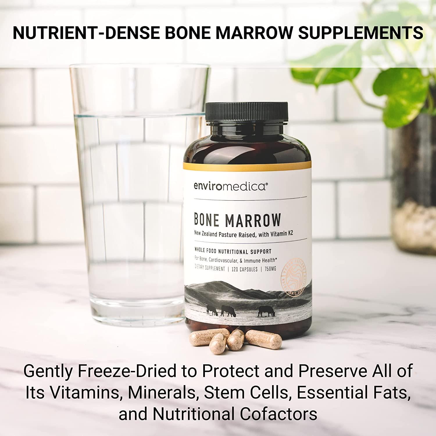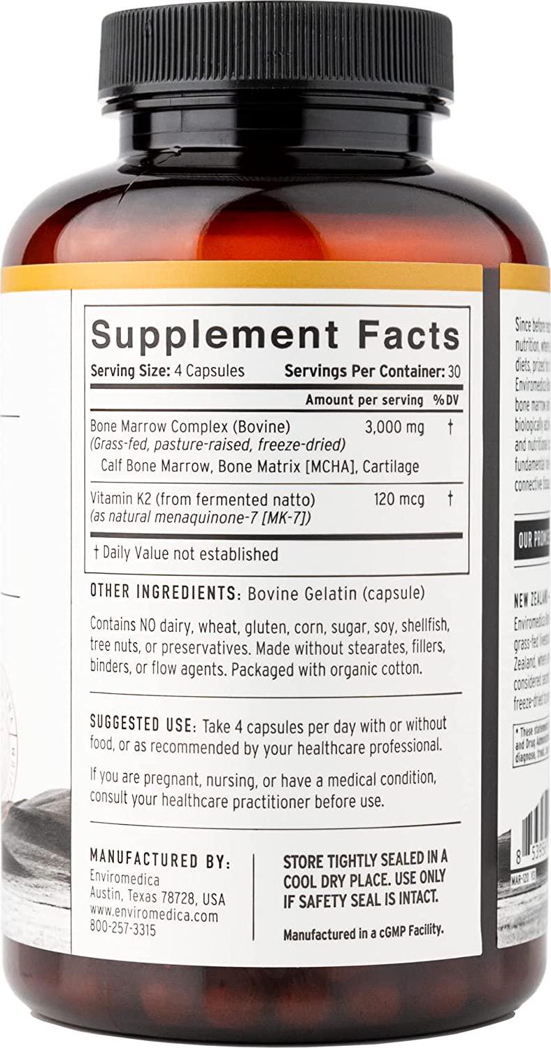 Enviromedica Freeze-Dried Bone Marrow Complex with Cartilage and MCHA Whole Bone from Grass-Fed Pastured New Zealand Bovine (120ct)