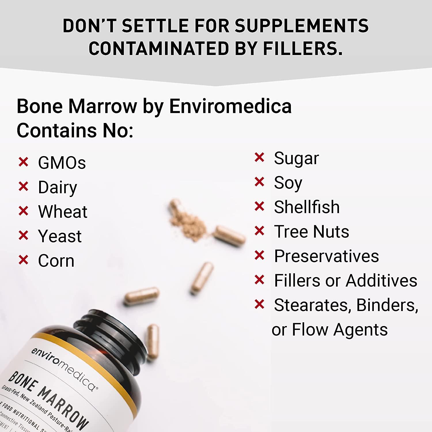 - ENVIROMEDICA BONE MARROW is a nutrient dense superfood rich in vitamins, minerals, and collagen to support joints, bones, cartilage, connective tissue and immune health. Bone marrow is an essential part of the ancestral diet and thought to be integral in the initiation of our species. With Enviromedica you can expect high quality, nutrient dense ingredients sourced from grass-fed, pastured beef.